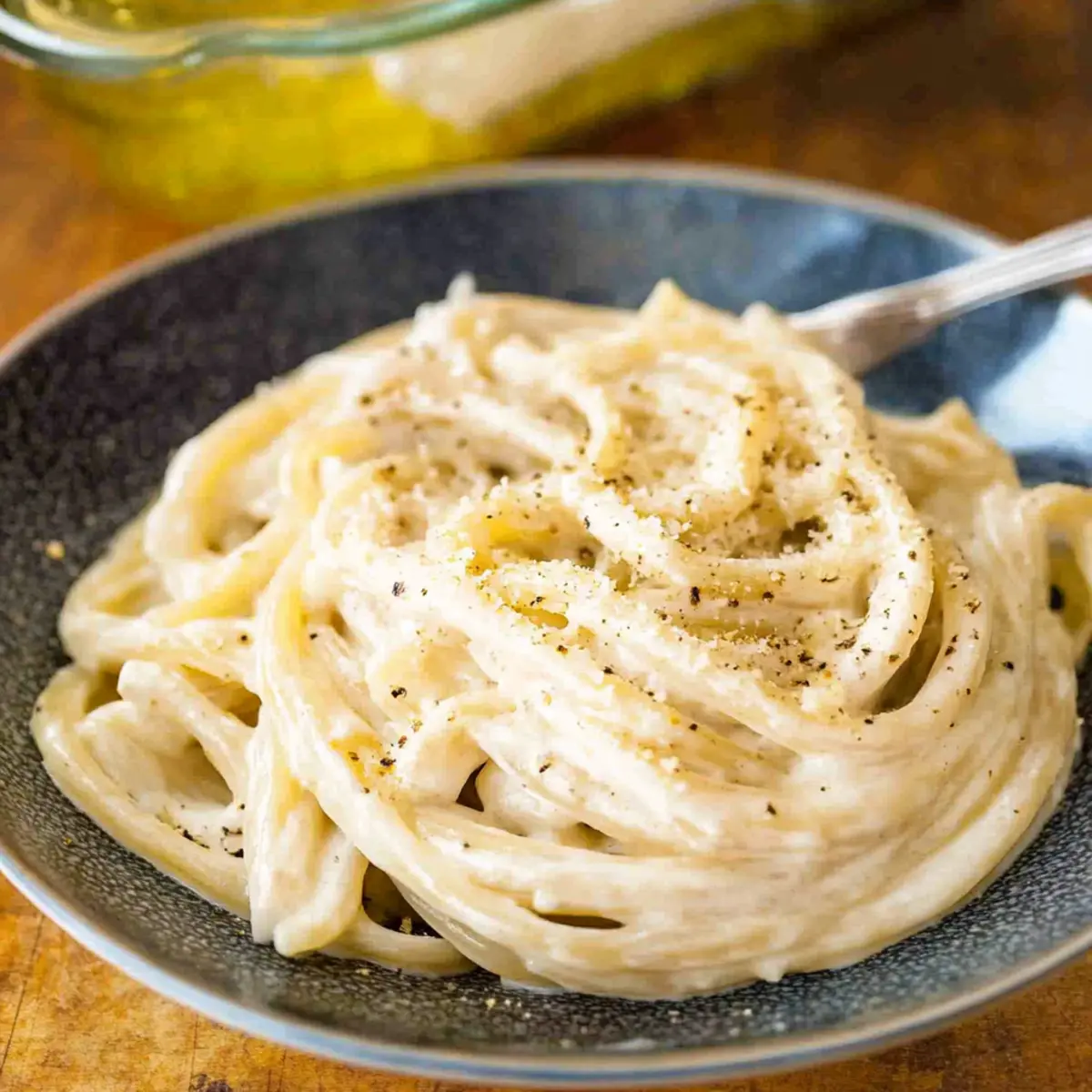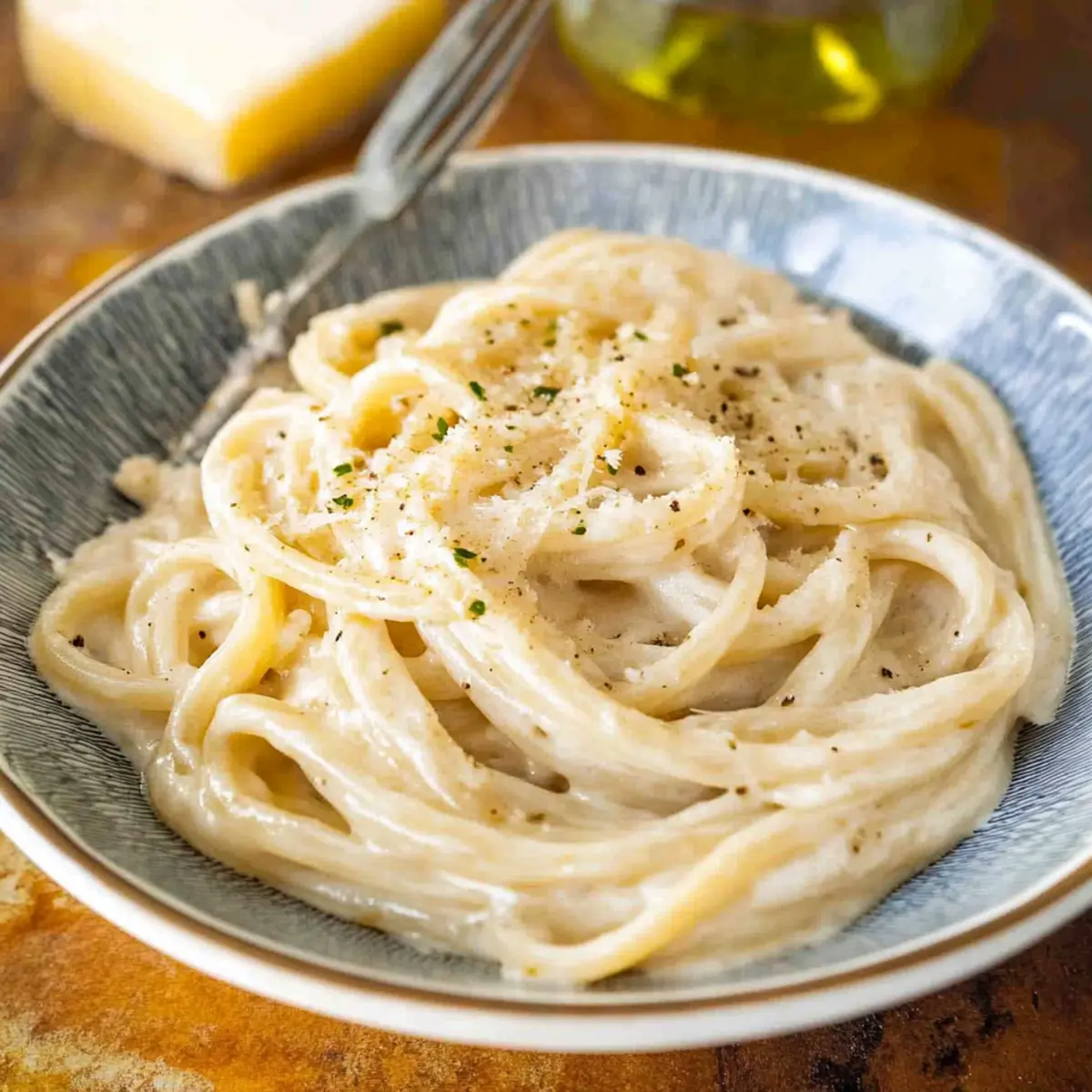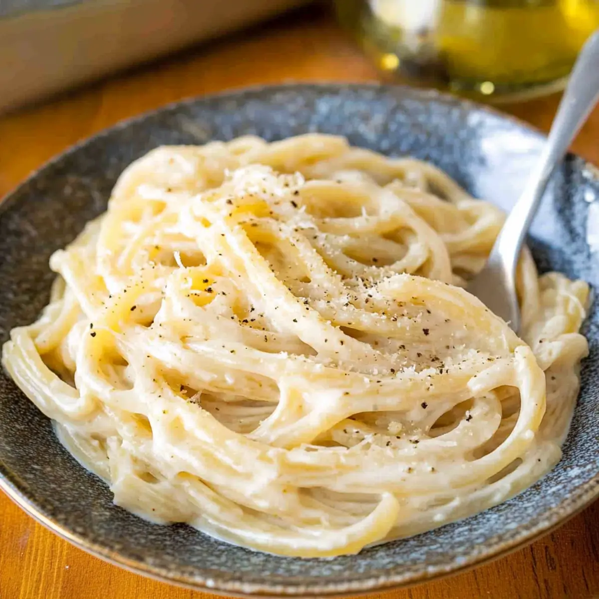 Once everything is uniformly mixed and heated through, immediately plate your creamy pasta. Drizzle with additional olive oil, and sprinkle more grated Parmesan and freshly ground black pepper on top if desired. This simple yet indulgent dish is best enjoyed right away while it’s warm and creamy, offering comfort in every delightful bite.