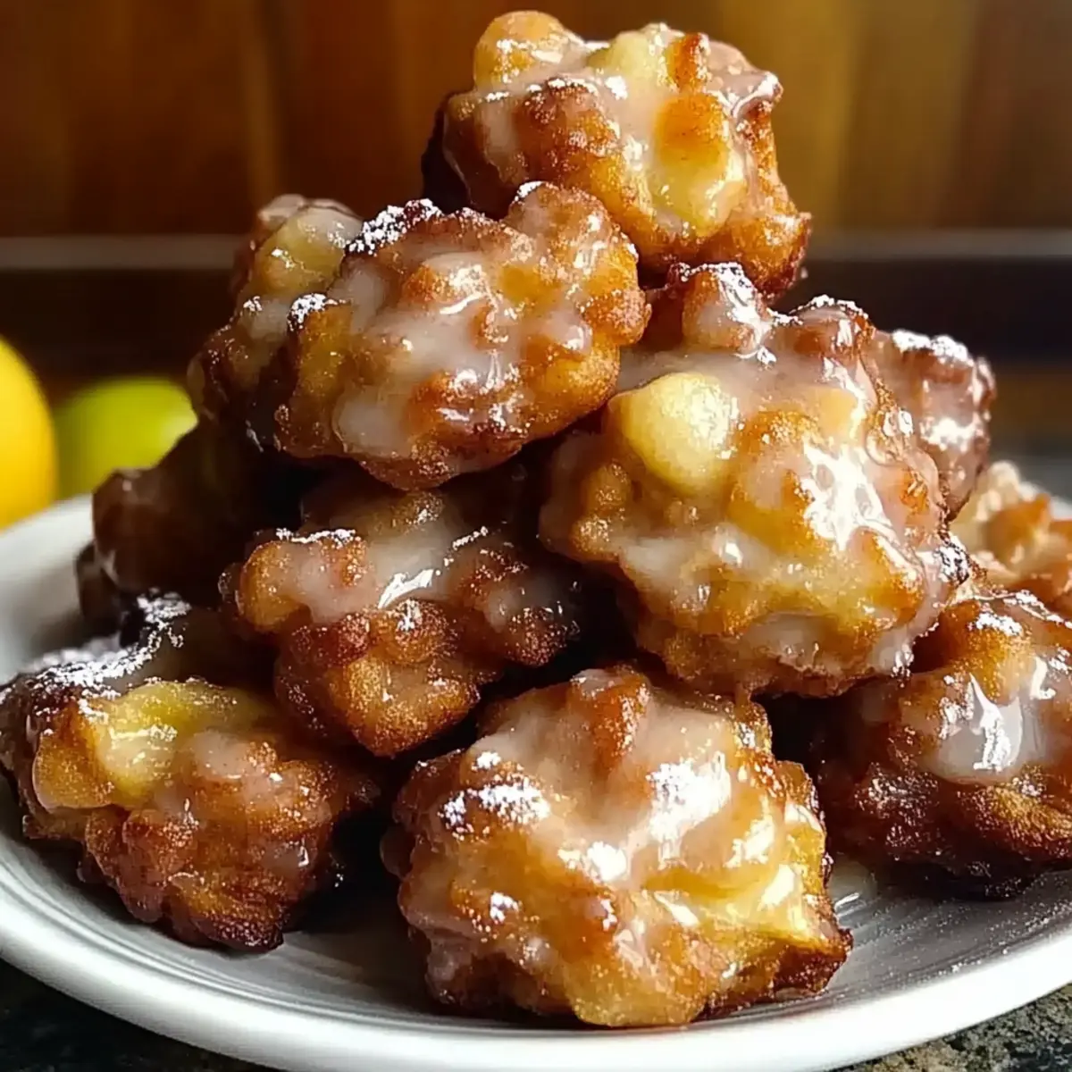 - Drizzle the glaze over warm fritters and serve immediately.