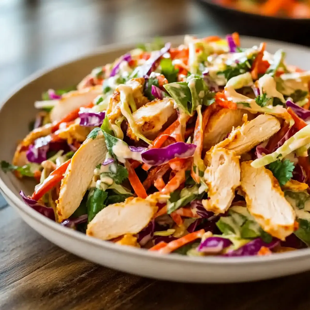 - Zesty Green: Swap cilantro for fresh mint or basil to give your Bang Bang Chicken Salad Slaw a refreshing twist with a different herbal kick.