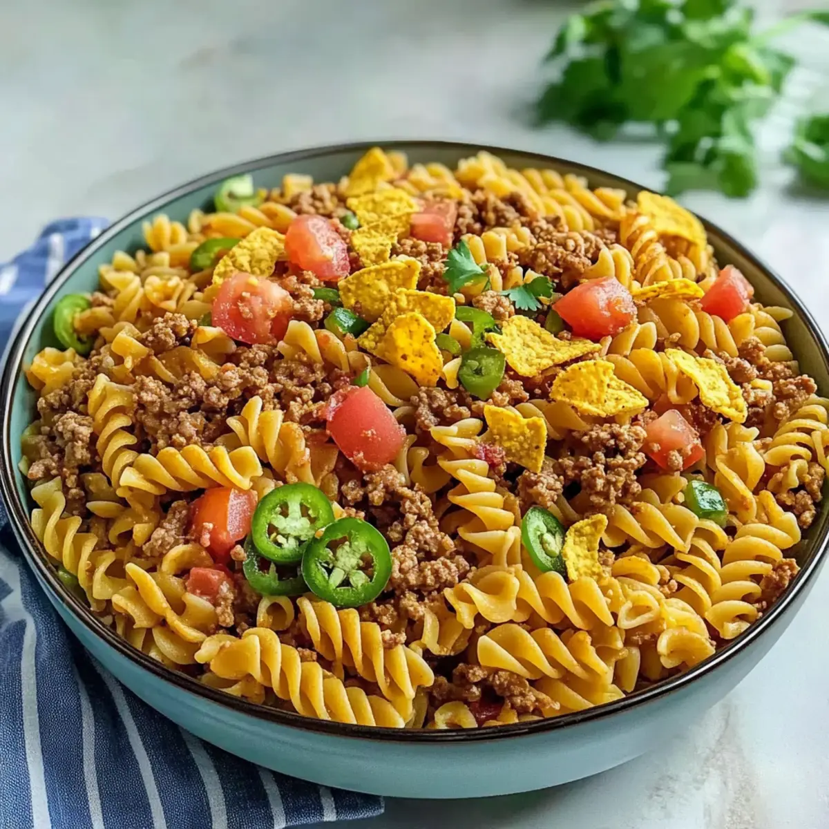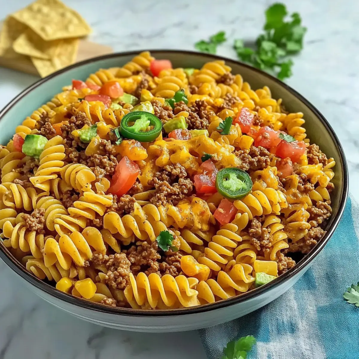 Flavor Boost: Allow the salad to chill in the fridge for at least 30 minutes before serving. This helps the flavors of the Beef Taco Pasta Salad meld beautifully.