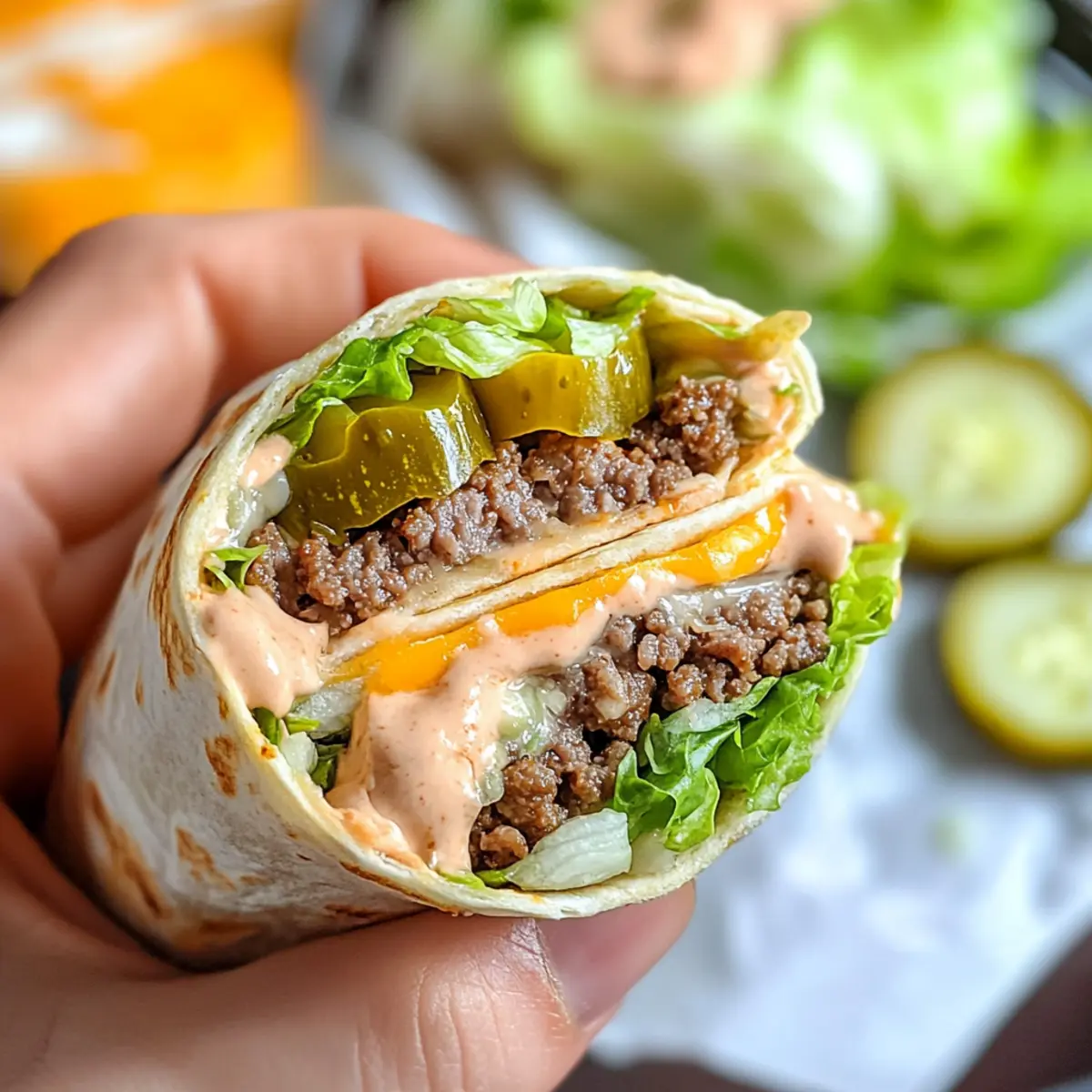 These Big Mac Wraps are a fantastic choice for meal prep! You can prepare the seasoned ground beef and the special sauce up to 3 days in advance. Simply cook the ground beef as instructed, let it cool, and store it in an airtight container in the refrigerator. Likewise, mix the sauce and refrigerate it in a separate container to maintain its flavor and creaminess. When ready to enjoy, simply warm the beef in a skillet or microwave, heat the wraps for 15-20 seconds, and assemble with lettuce, cheese, and pickles. This way, you’ll have delicious, homemade Big Mac Wraps ready to go with minimal effort!