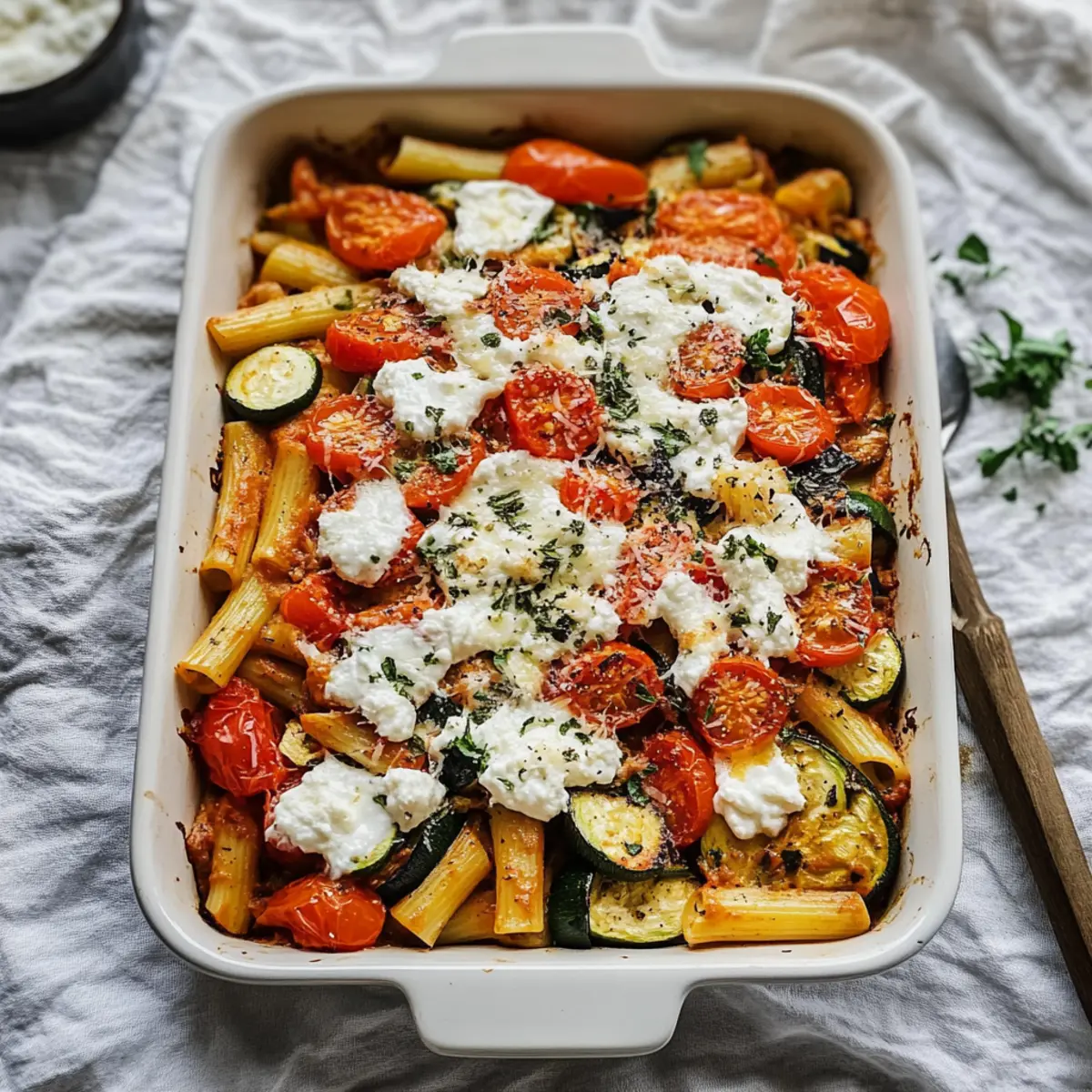 Hearty Eggplant Pasta Bake with Tomato & Zucchini Delight