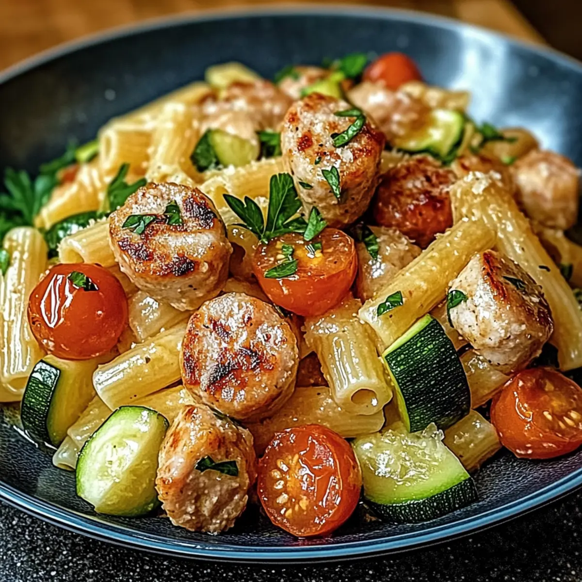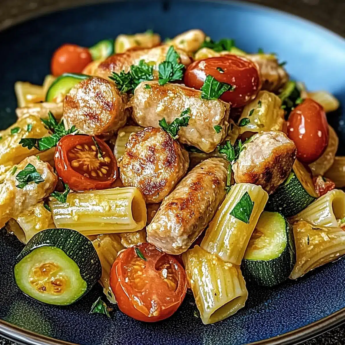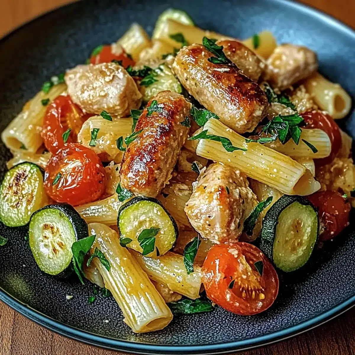 Chicken Sausages with Zucchini, Tomatoes and Pasta Made Simple