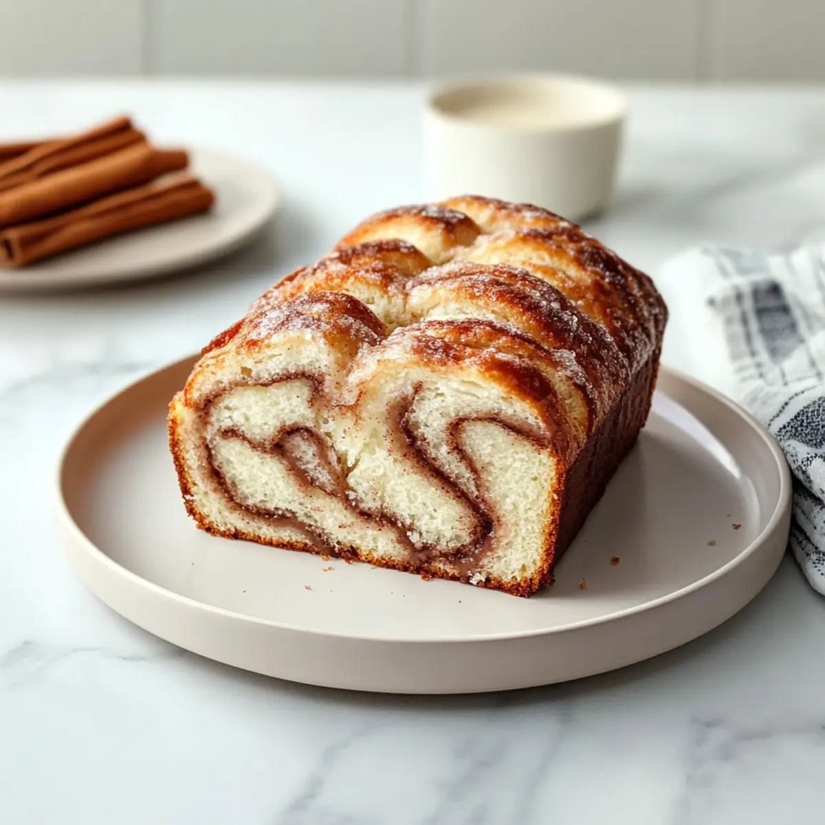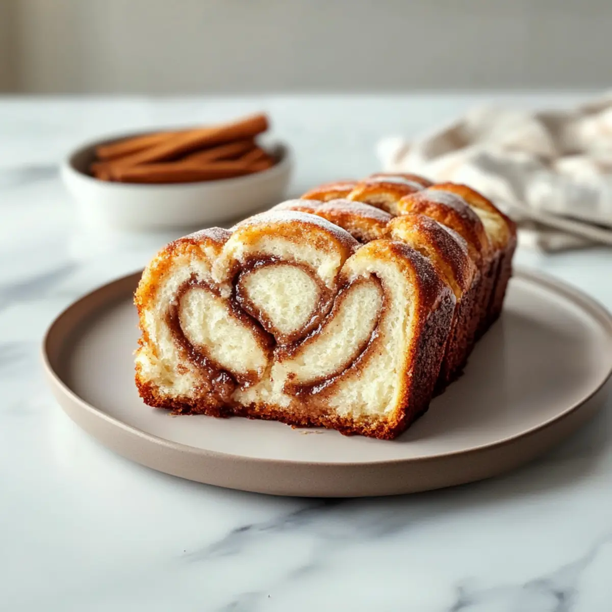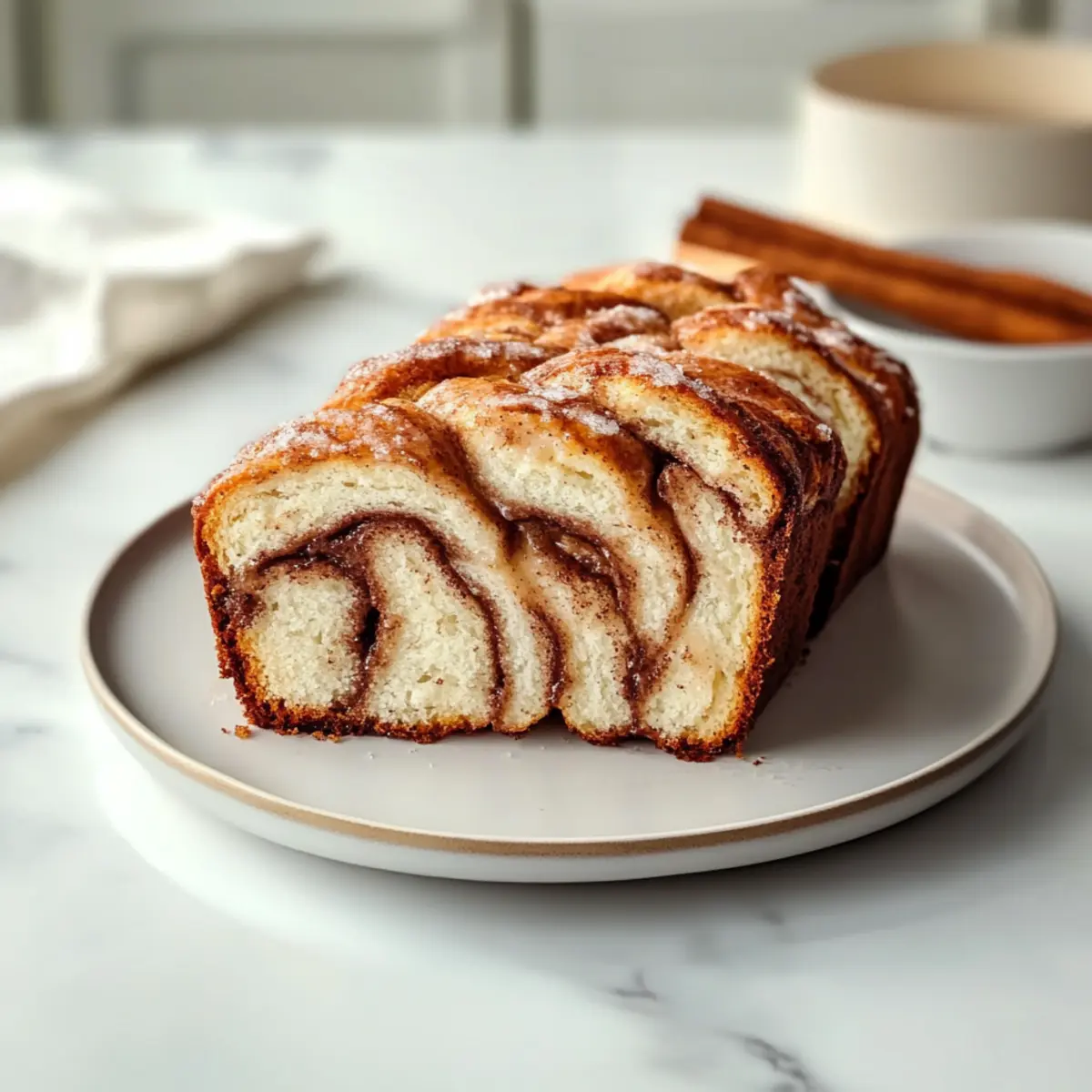 Comforting Texture: Baked to perfection, this bread boasts a moist crumb and an irresistible cinnamon swirl that evokes memories of traditional cinnamon rolls.