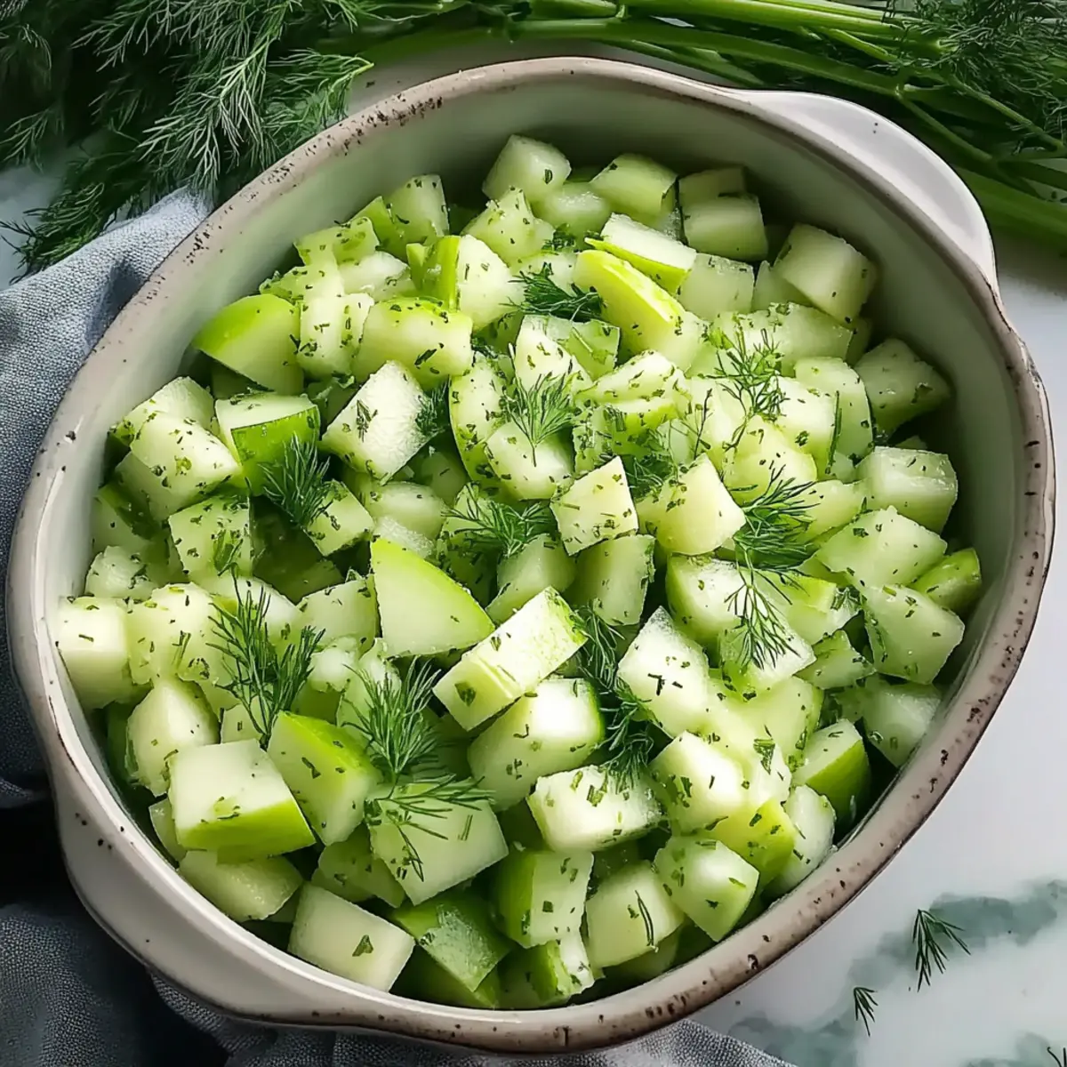 As I stood in my kitchen, the crisp sound of the knife slicing through fresh cucumber and crunchy celery filled the air, teasing my taste buds with the promise of a refreshing delight. This Crunchy Cucumber Celery Salad with Green Apple is not just a dish; it’s a vibrant celebration of summer’s best offerings, ready in under 15 minutes! Imagine a quick side dish that’s both healthy and full of flavor—perfect for those sunny barbecues or a light lunch at home. With each bite, the sweet-tart burst of green apple complements the cool crunch of cucumber and celery, making it irresistibly appealing. Whether you’re looking to impress your guests or simply wanting to inject some wholesome goodness into your meal, this salad is the answer. Curious about how to make it your own? Let’s dive into the recipe!
