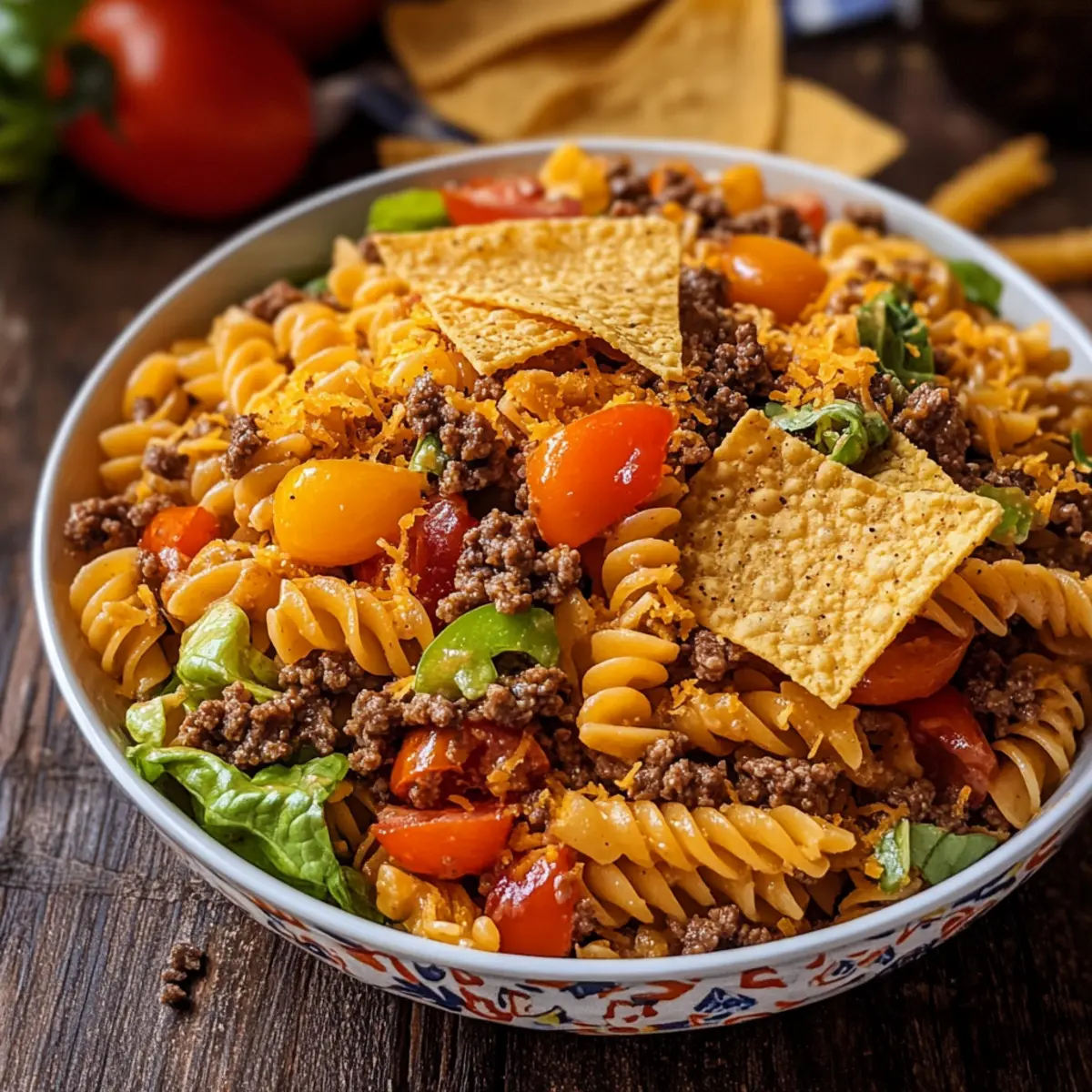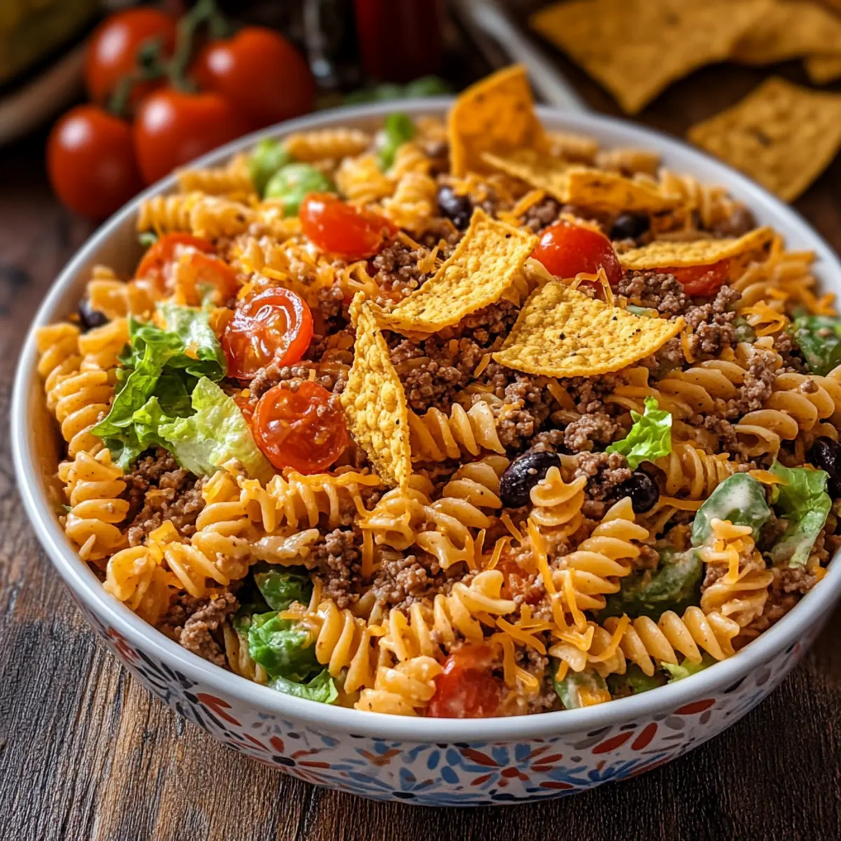- Chill Your Pasta: Rinse your cooked rotini with cold water to stop the cooking process and prevent sogginess in the Doritos Locos Taco Pasta Salad.