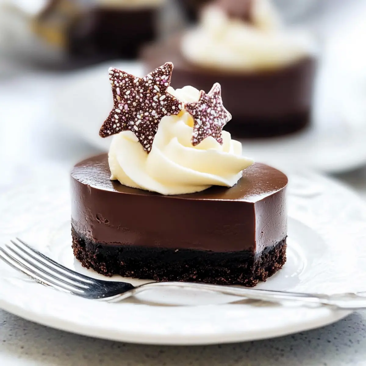 Cover the pan with plastic wrap to avoid absorbing odors from the fridge. Refrigerate the Easy Chocolate Dessert for at least 1 hour for mini servings or up to 6 hours for a larger cake. When ready, the ganache should be firm to the touch but still slightly soft—perfect for slicing!