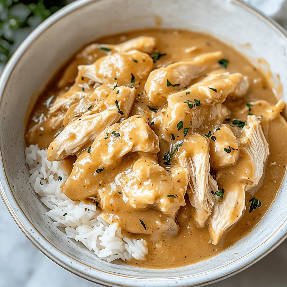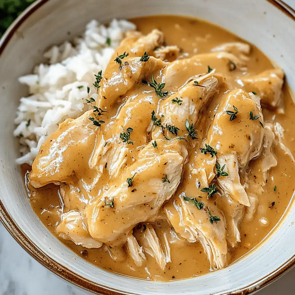 - Shred the Chicken: Once cooked, shred the chicken in the slow cooker using two forks, mixing it with the gravy.