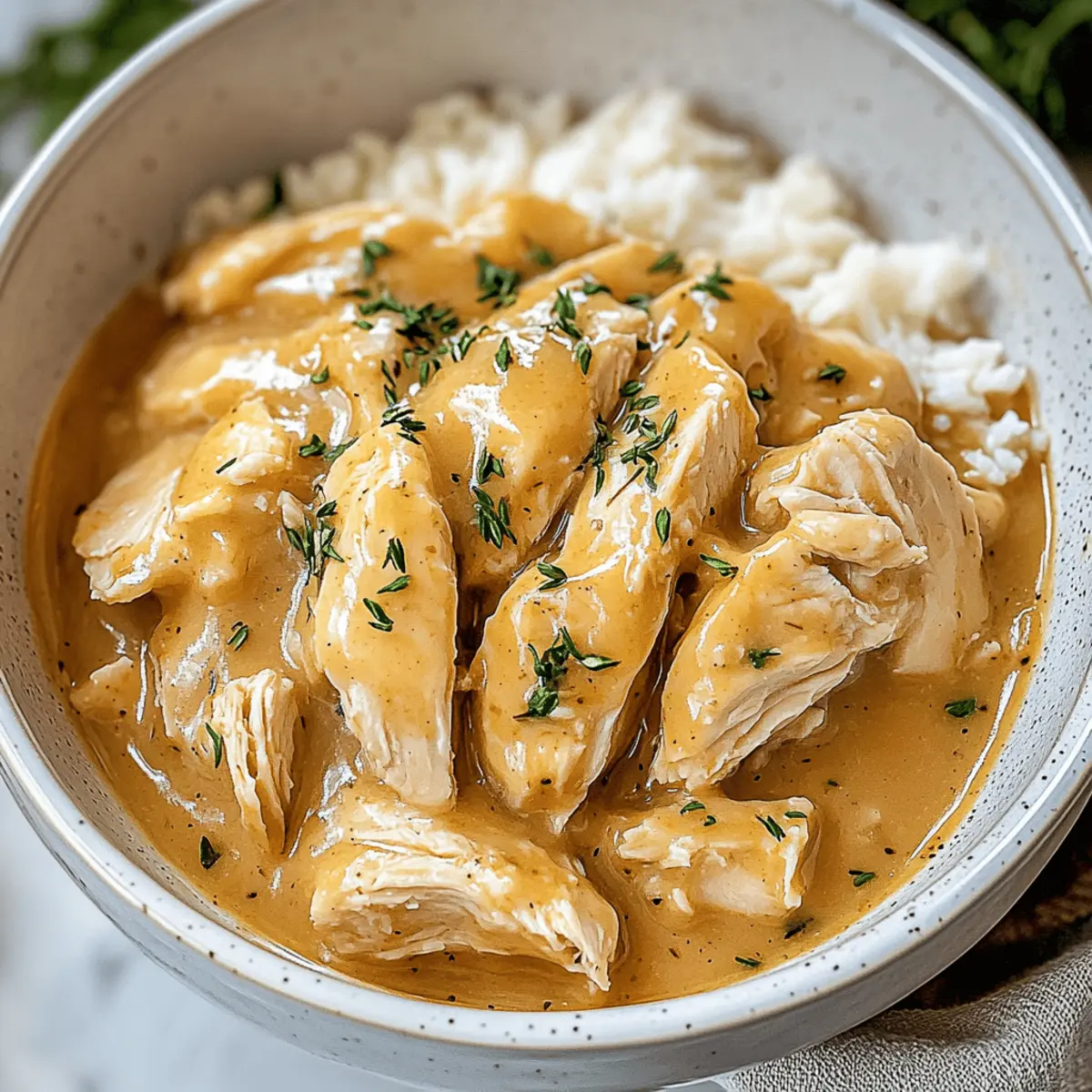 The aroma wafting through my kitchen was hard to resist—I could already envision everyone gathering around the table to savor this dish. My Easy Crockpot Chicken and Gravy recipe is a lifesaver for those bustling weeknights when you’re craving something cozy without the fuss. With just a few simple ingredients, this slow cooker wonder delivers mouthwatering, tender chicken smothered in a rich, savory gravy that warms the heart. This method allows for easy meal prep—perfect for busy families or anyone looking to elevate their weeknight dinners. Plus, with minimal cleanup, you can spend more time enjoying your delicious creation and less time washing dishes. How does that sound for your busy week ahead?