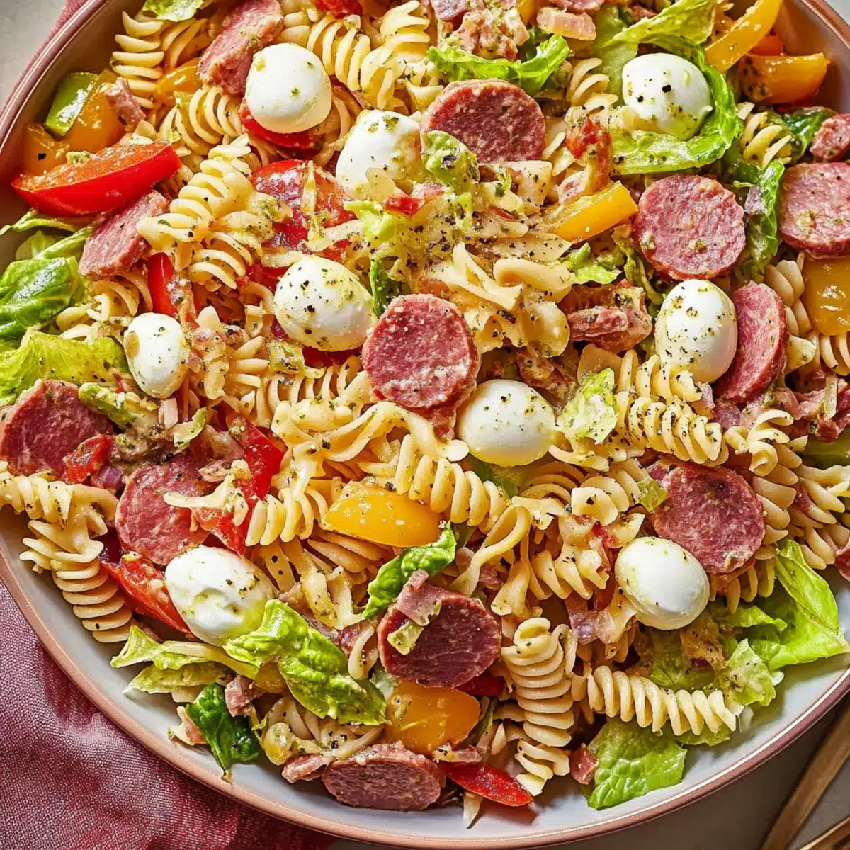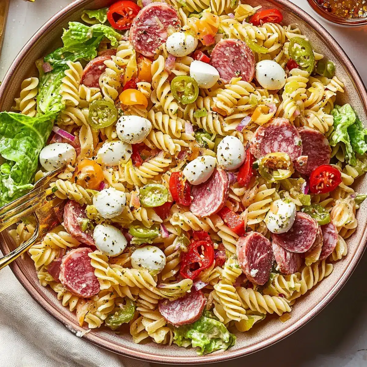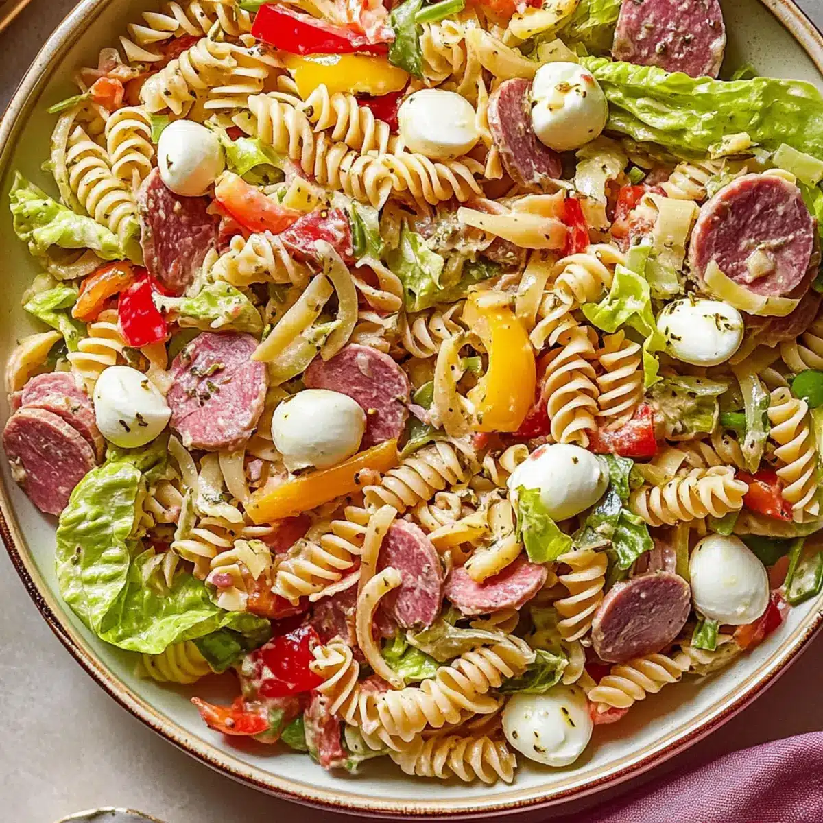 Vibrant Flavors: With a delightful blend of fresh veggies, savory meats, and zesty herbs, this Favorite Grinder Pasta Salad is a celebration of classic Italian flavors.