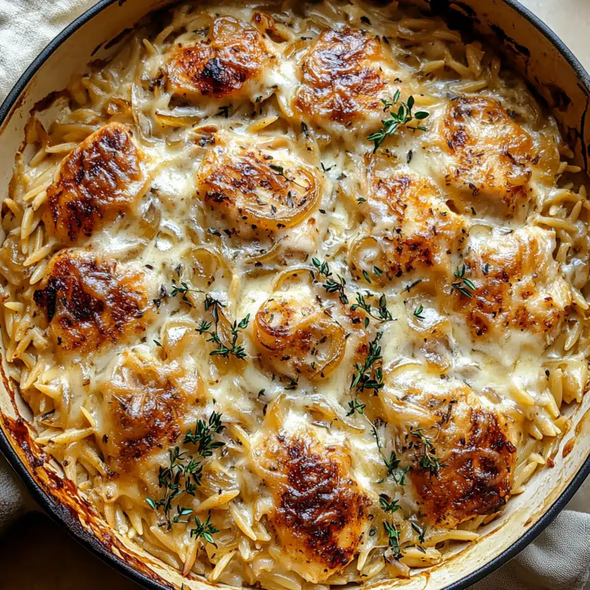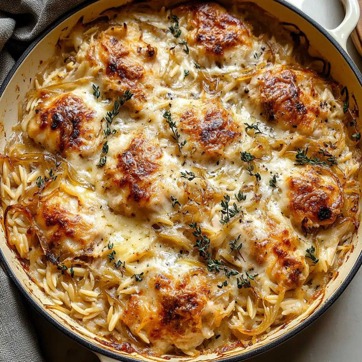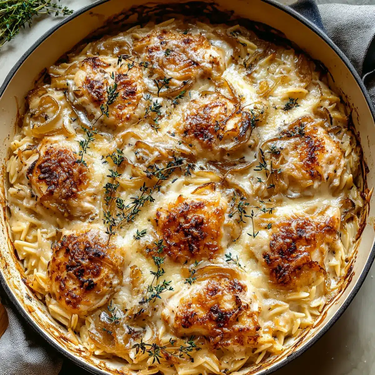 French Onion Chicken Orzo Casserole: Cozy Comfort in a Dish