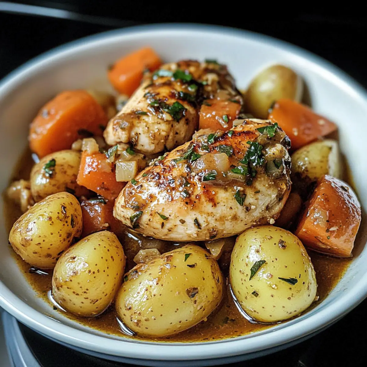 As I stirred the pot, the warm, inviting aroma of garlic wafted through my kitchen, instantly transforming my home into a cozy bistro. There’s nothing quite like the feeling of knowing you have a delicious meal waiting for you, and this Garlic Butter Chicken Crockpot recipe delivers just that! With its effortless preparation and family-friendly charm, you’ll find it’s the ultimate comfort food for busy evenings. Imagine coming home to tender chicken nestled alongside perfectly cooked potatoes and vibrant carrots, all enveloped in a silky garlic butter sauce. Plus, it’s a low-lactose option, making it suitable for various dietary preferences. So, are you ready to discover a slow-cooked delight that will make your family ask for seconds? Let’s dive into this delectable recipe!