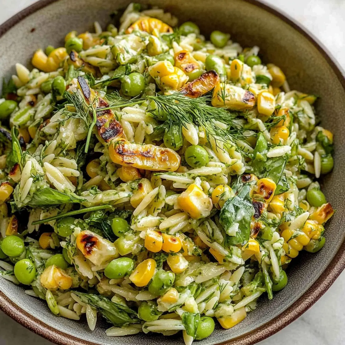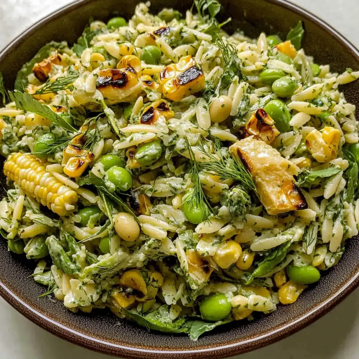 Grilled Corn Orzo Salad with Scallion Dill Dressing Bliss