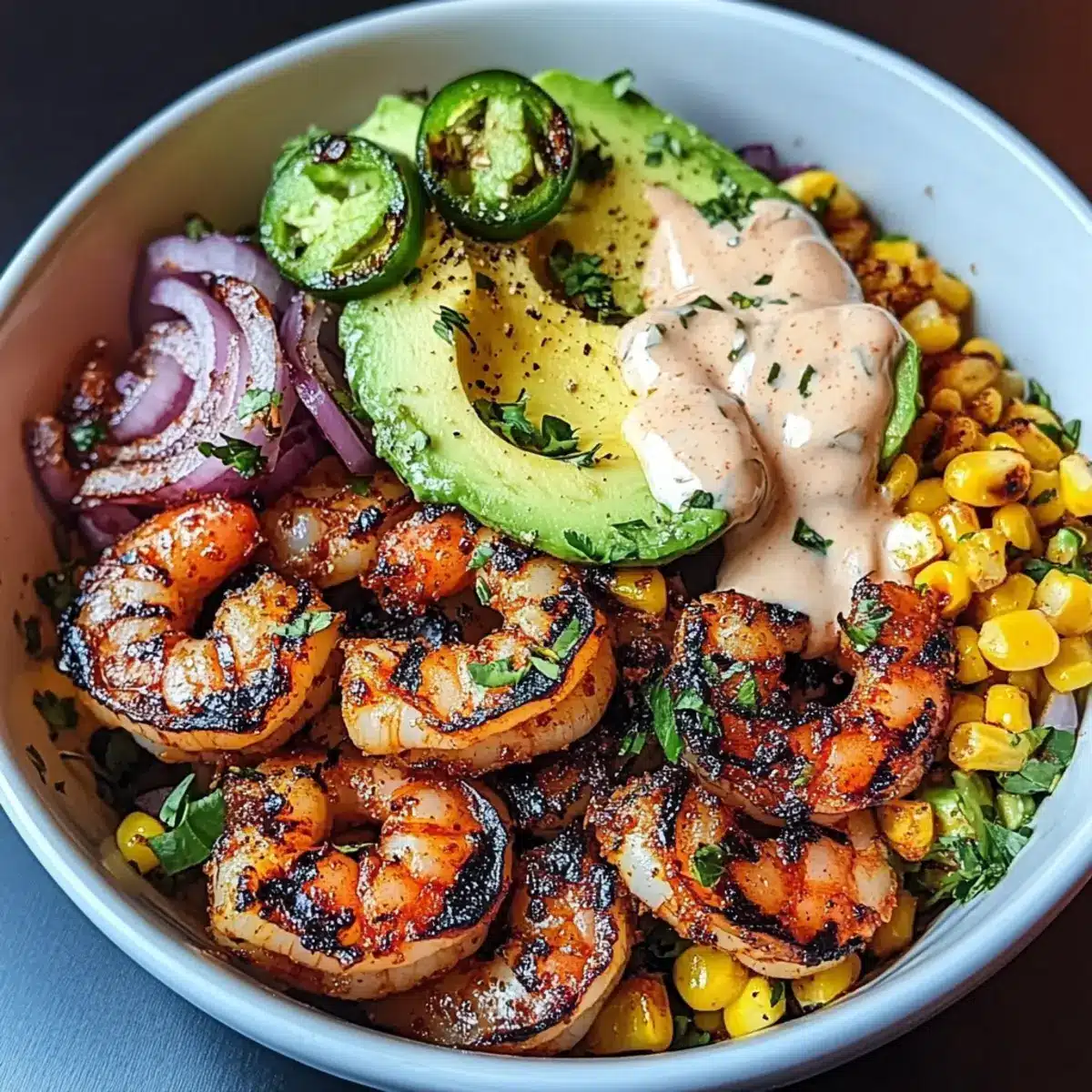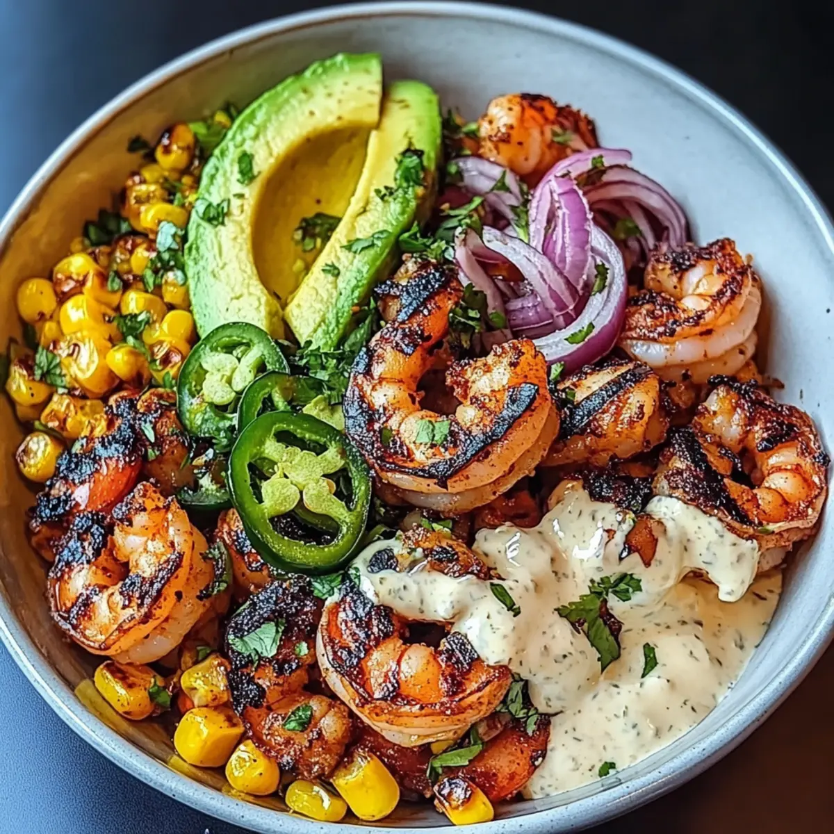 Savor the Flavor: Grilled Shrimp Bowl with Creamy Goodness