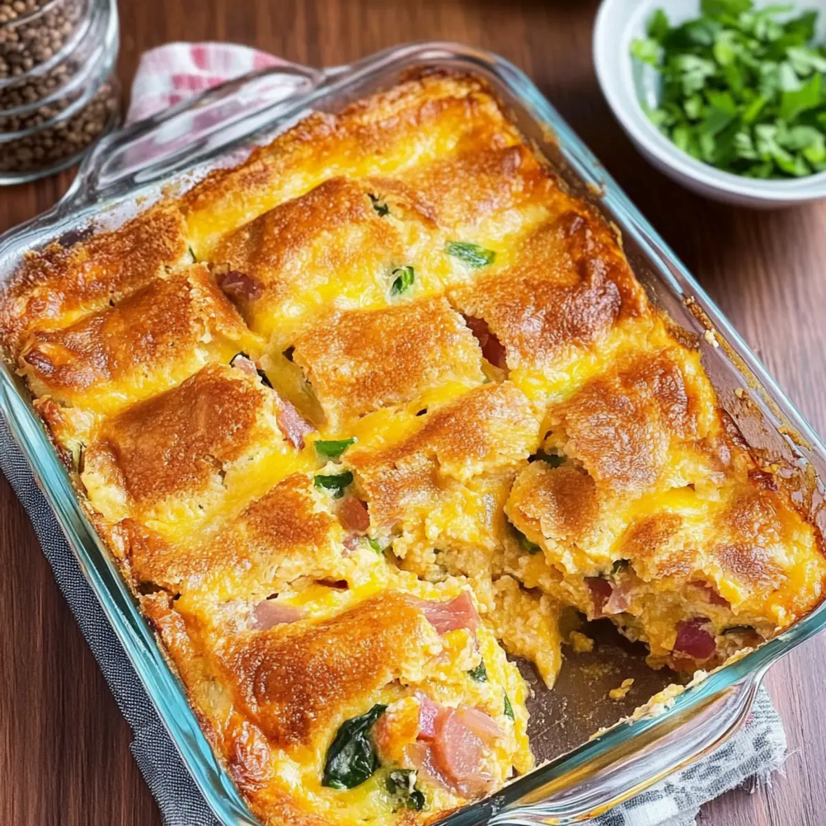 - Fresh Herbs (like chives or parsley) – Offers a burst of freshness to the dish; always a great finishing touch for your Ham and Cheese Strata.