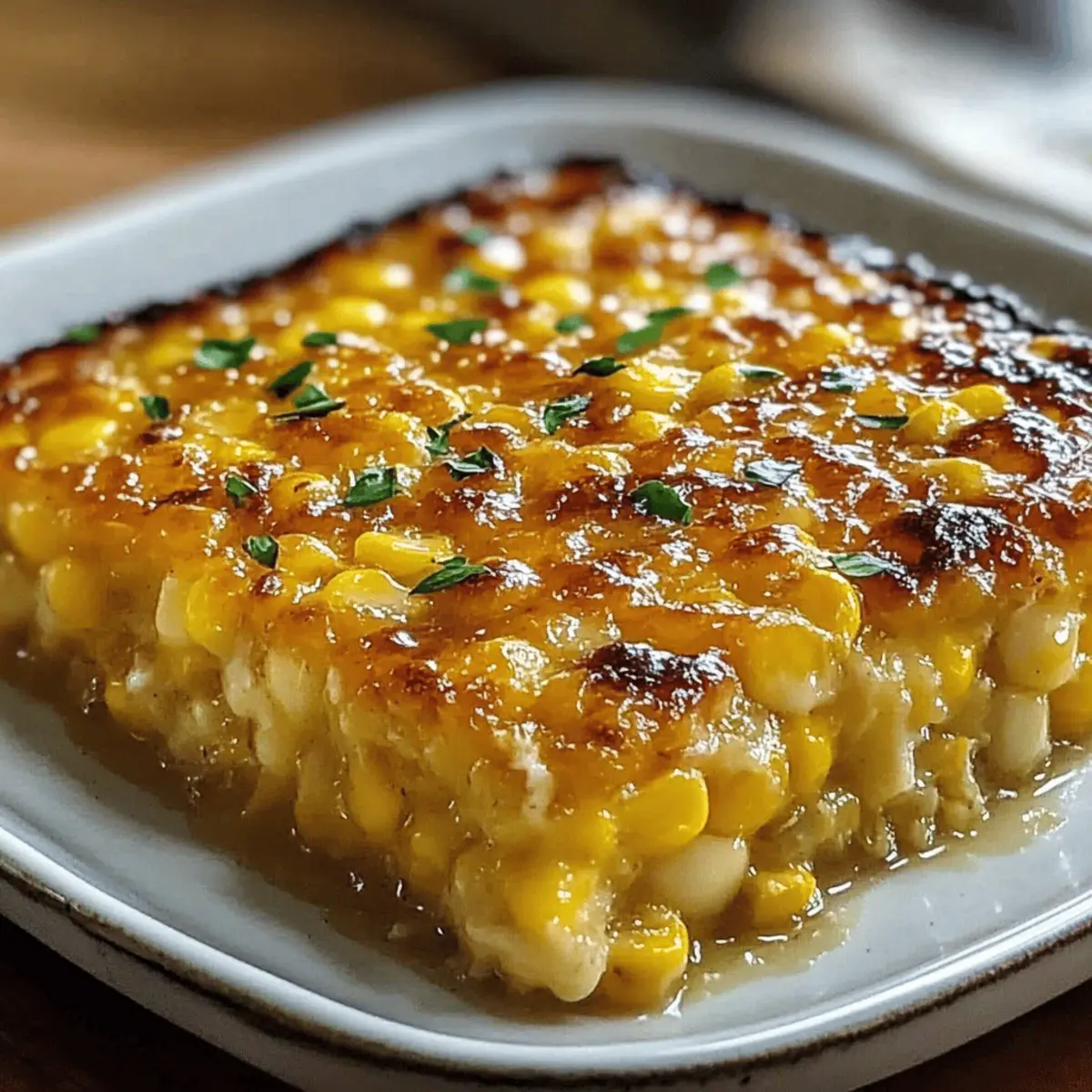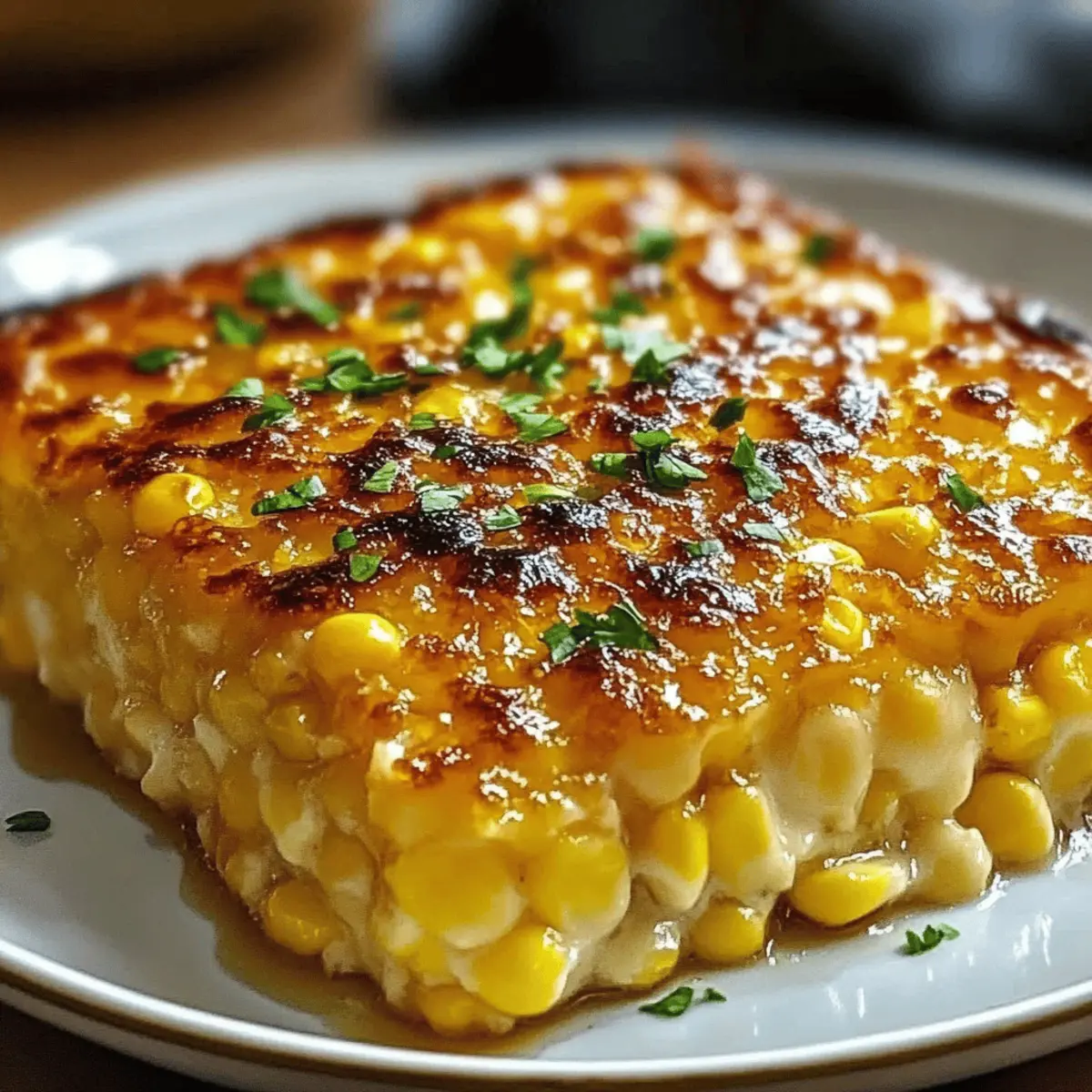 Once baked, remove the casserole from the oven and allow it to cool for about 10 minutes. This resting time helps solidify the sauce and makes it easier to slice. Just before serving, garnish with chopped chives or parsley for a fresh touch that brightens up the dish visually and adds flavor to your Honey-Glazed Corn Casserole.