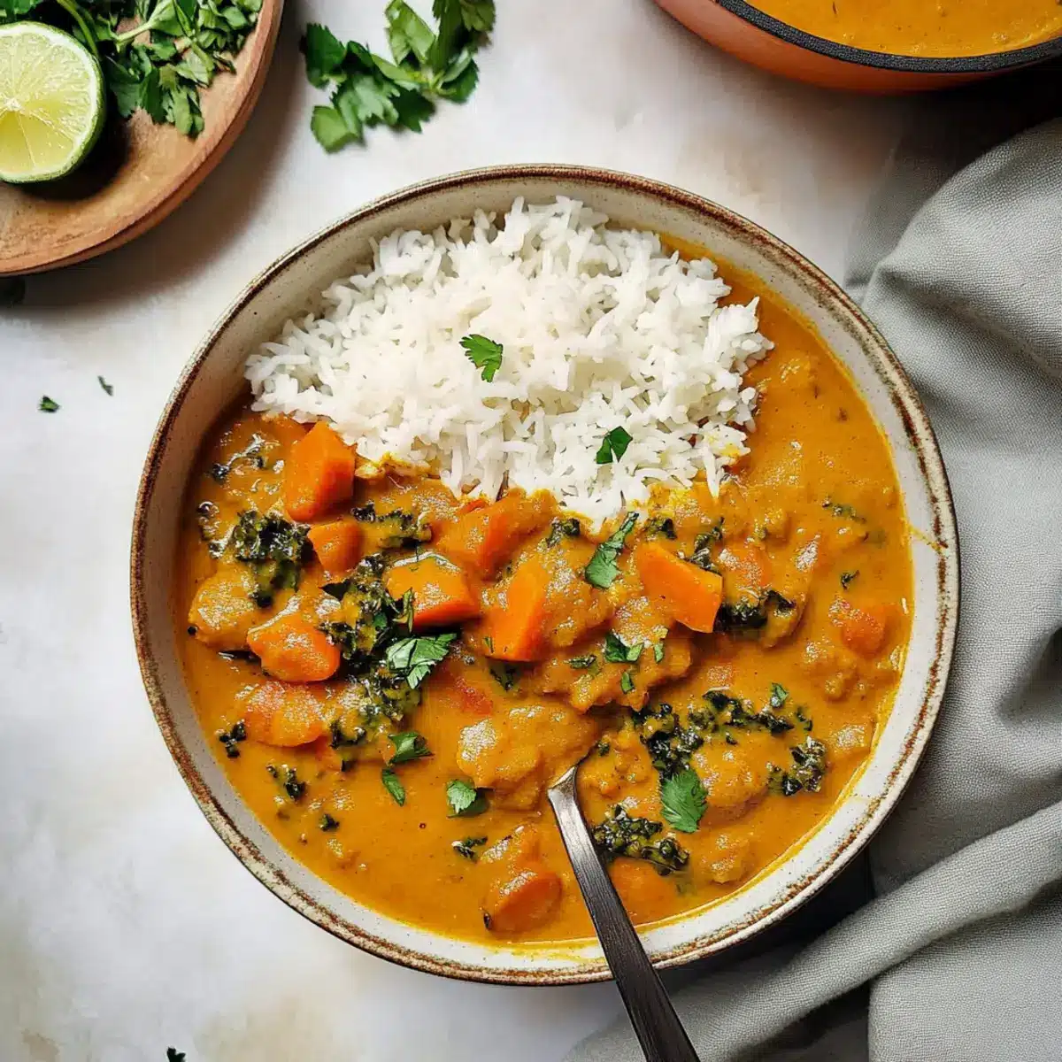 Nourishing Comfort: Creamy coconut milk combined with pumpkin creates a warm, wholesome dish.