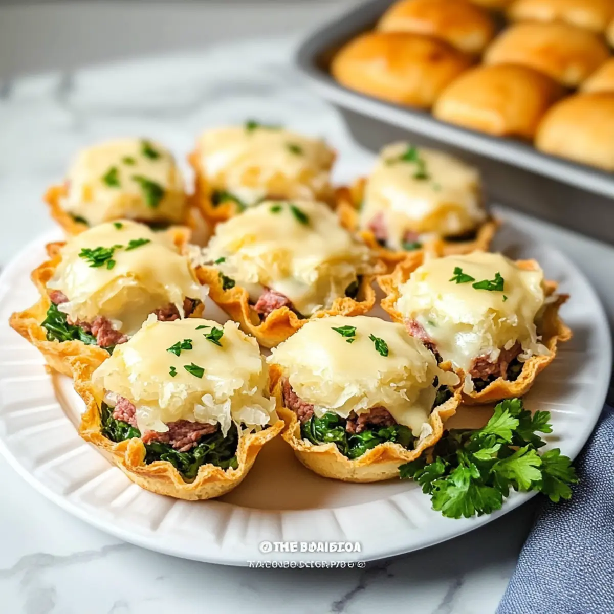 Mini Reuben Sliders: Savory corned beef and tangy sauerkraut nestled in a slider that brings hearty satisfaction. They’re perfect for balancing the creamy dip!