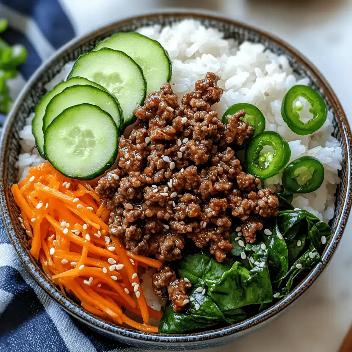 Serve your Quick & Easy Korean Ground Beef Bowl warm, perhaps with a side of kimchi or your favorite pickled vegetables for an authentic touch. Relish each bite as the harmony of savory beef and fresh veggies unfolds, transforming your home kitchen into a delightful Korean eatery!
