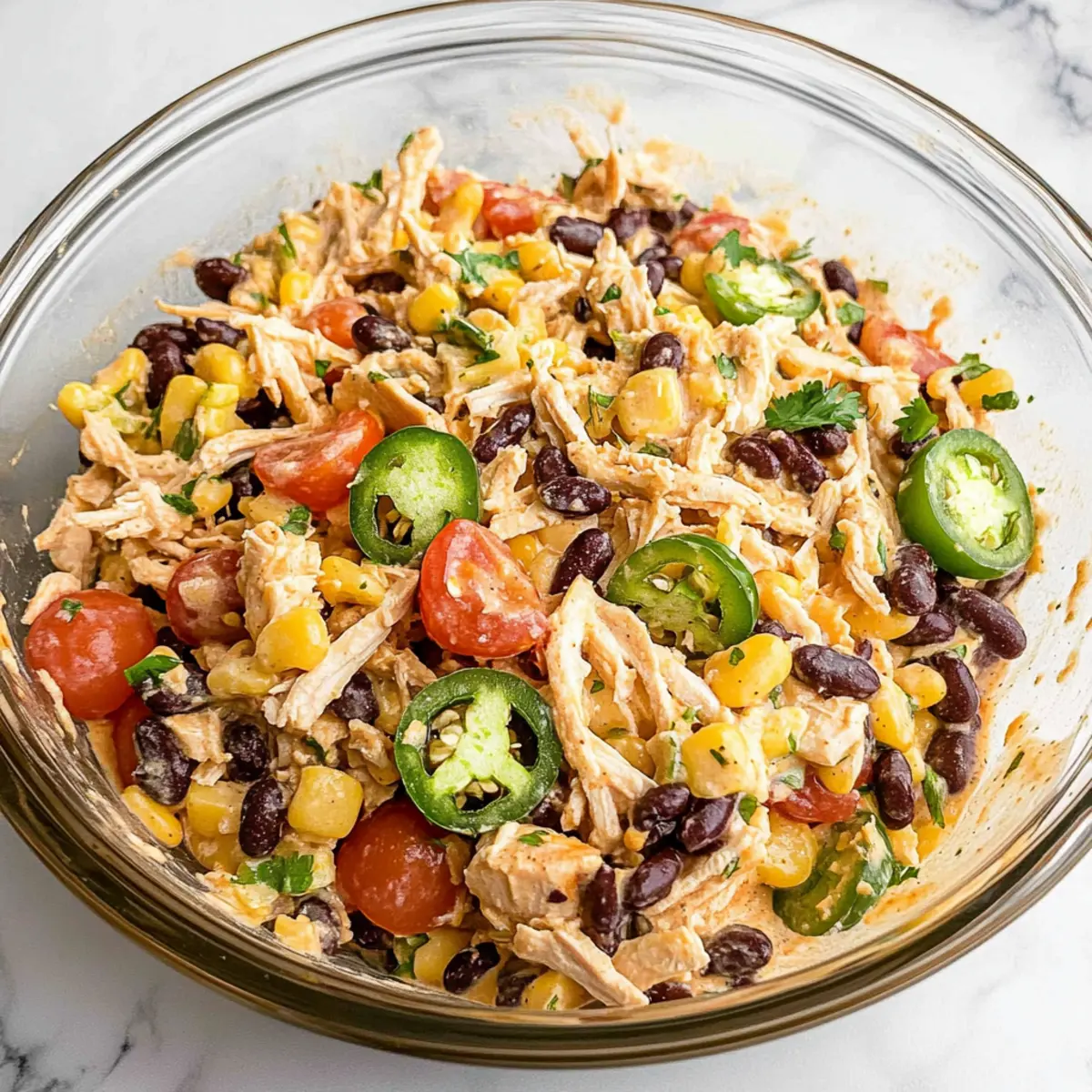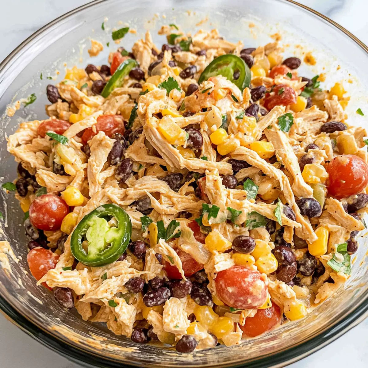 Spice Control: Adjust the amount of jalapeños based on your heat preference; remove seeds for less spice. This ensures a balanced Quick Southwest Chicken Salad.