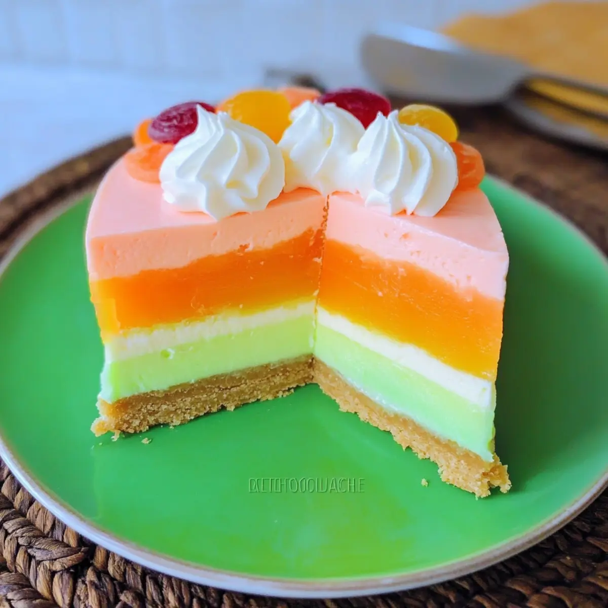 Layered Swirls: Instead of distinct layers, swirl the JELLO flavors through the cheesecake filling for a marbled effect. This gives a playful, random pop of color that’s visually striking.
