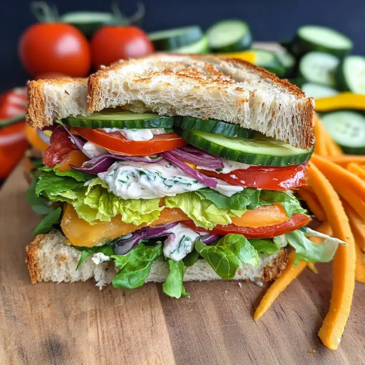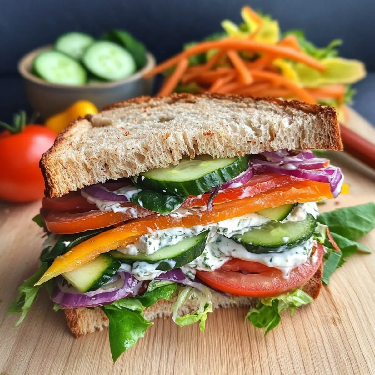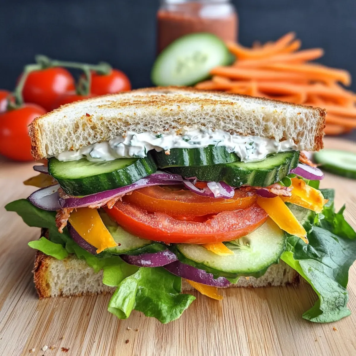 - Cheese Variation: Experiment with different cheeses like herbed cream cheese or sharp cheddar for a unique twist. This flexibility keeps the Rainbow Vegetable Sandwich exciting!
