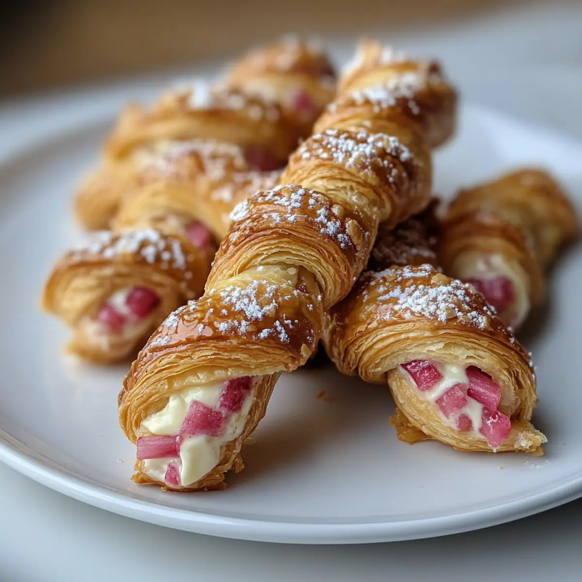 Simplicity, this recipe makes delightful pastries accessible to everyone, using store-bought puff pastry for a quick prep! Delicious Flavor, the delightful contrast of tart rhubarb and creamy cheese creates a perfectly balanced filling that will have your family asking for seconds. Warm and Comforting, fresh from the oven, they provide that cozy feeling of bakery-fresh treats right at home. Versatile Choices let you mix and match with other fruits or flavored cream cheeses like lemon, giving you countless ways to impress. Crowd-Pleaser characteristics mean they are perfect for brunches or dessert, guaranteed to keep your guests talking! Pair them with a cup of coffee, and you have the ultimate indulgence!