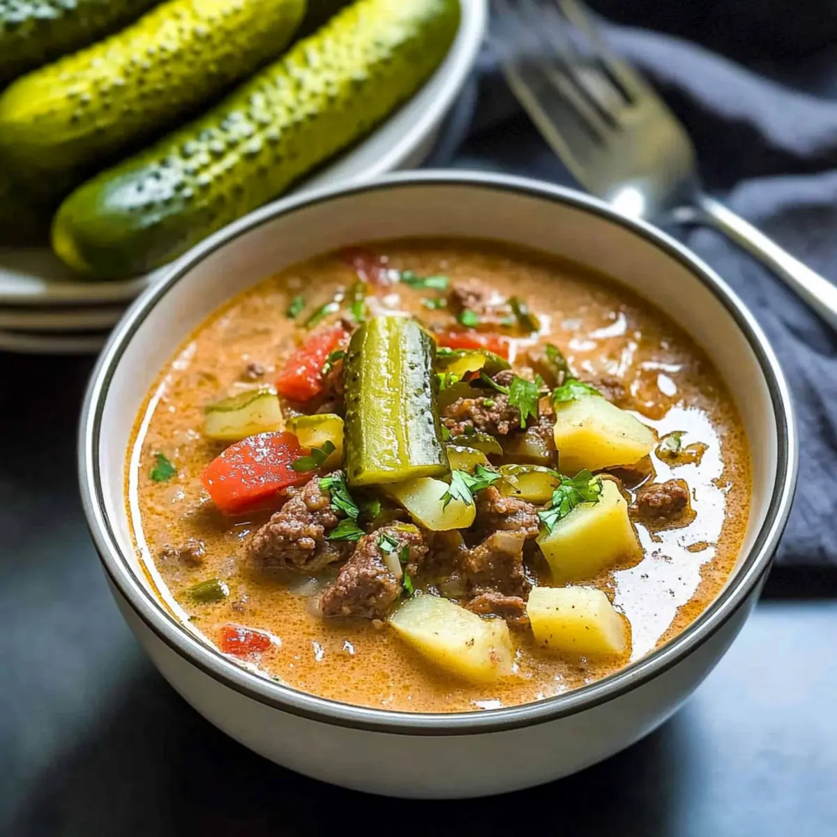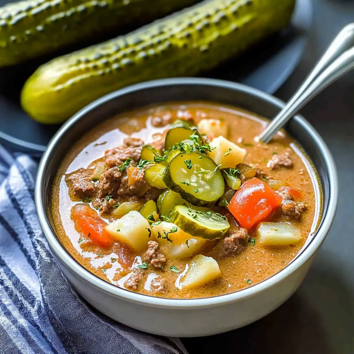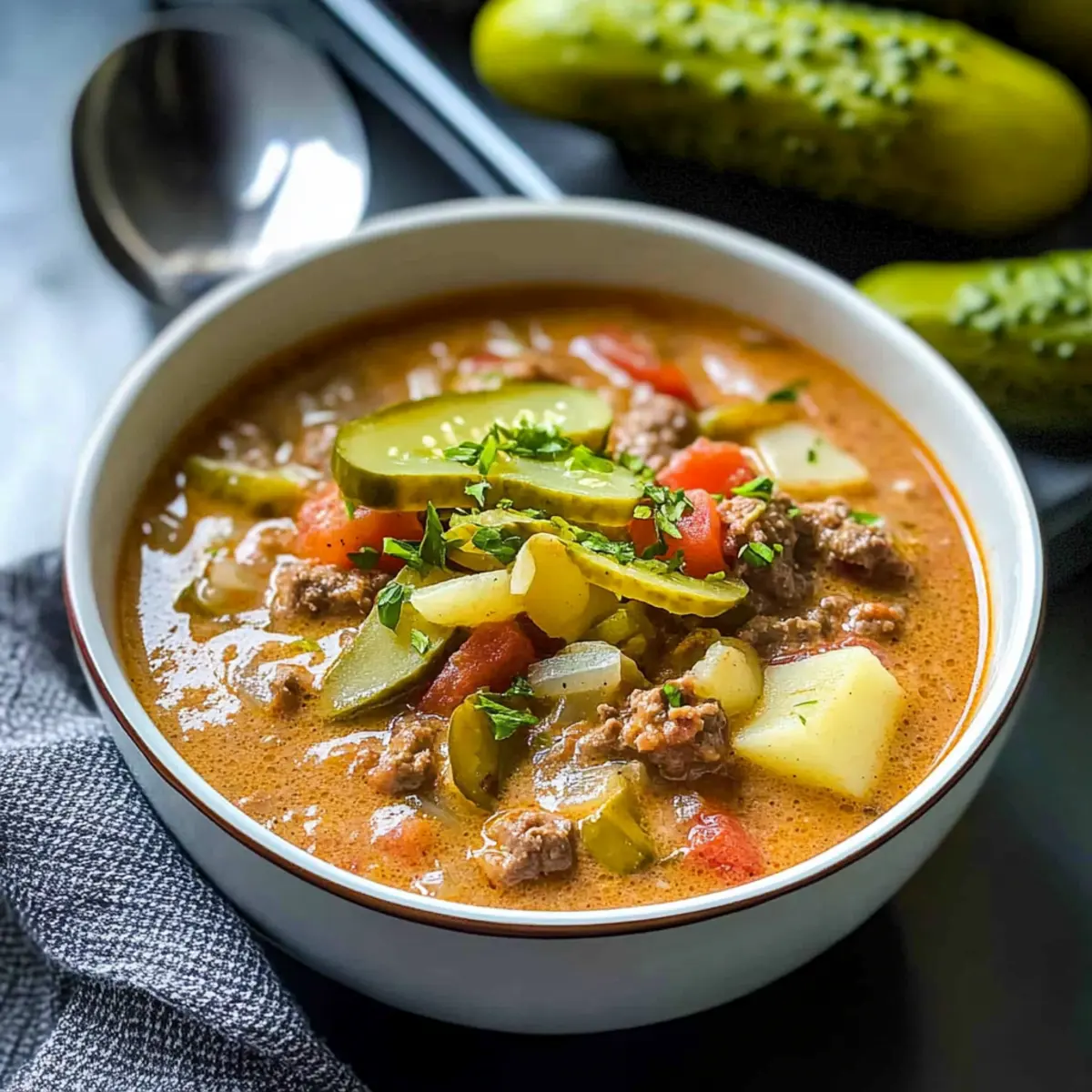 Homemade Pickle Chips: Add a zesty crunch on the side that echoes the flavors of the dill pickles in your soup, enhancing the overall cheesy and tangy experience.