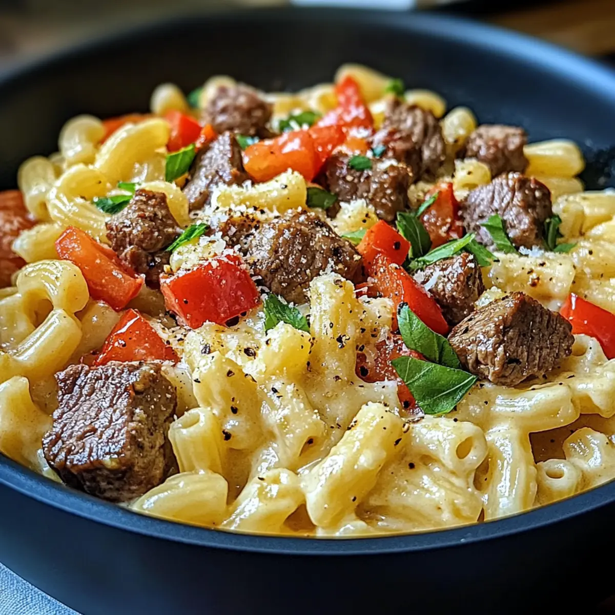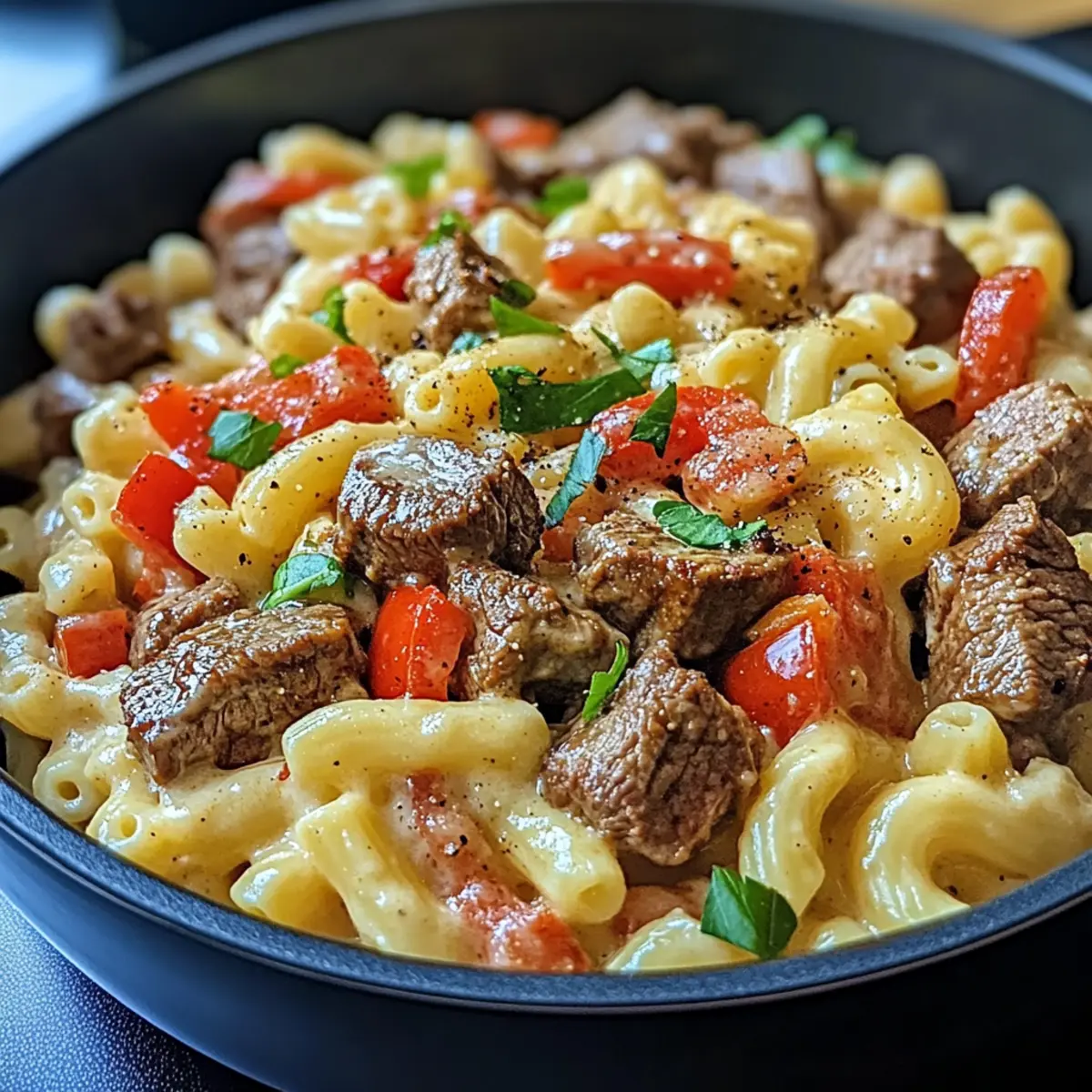Cheesy Steak & Pepper Jack Queso Mac for Cozy Nights