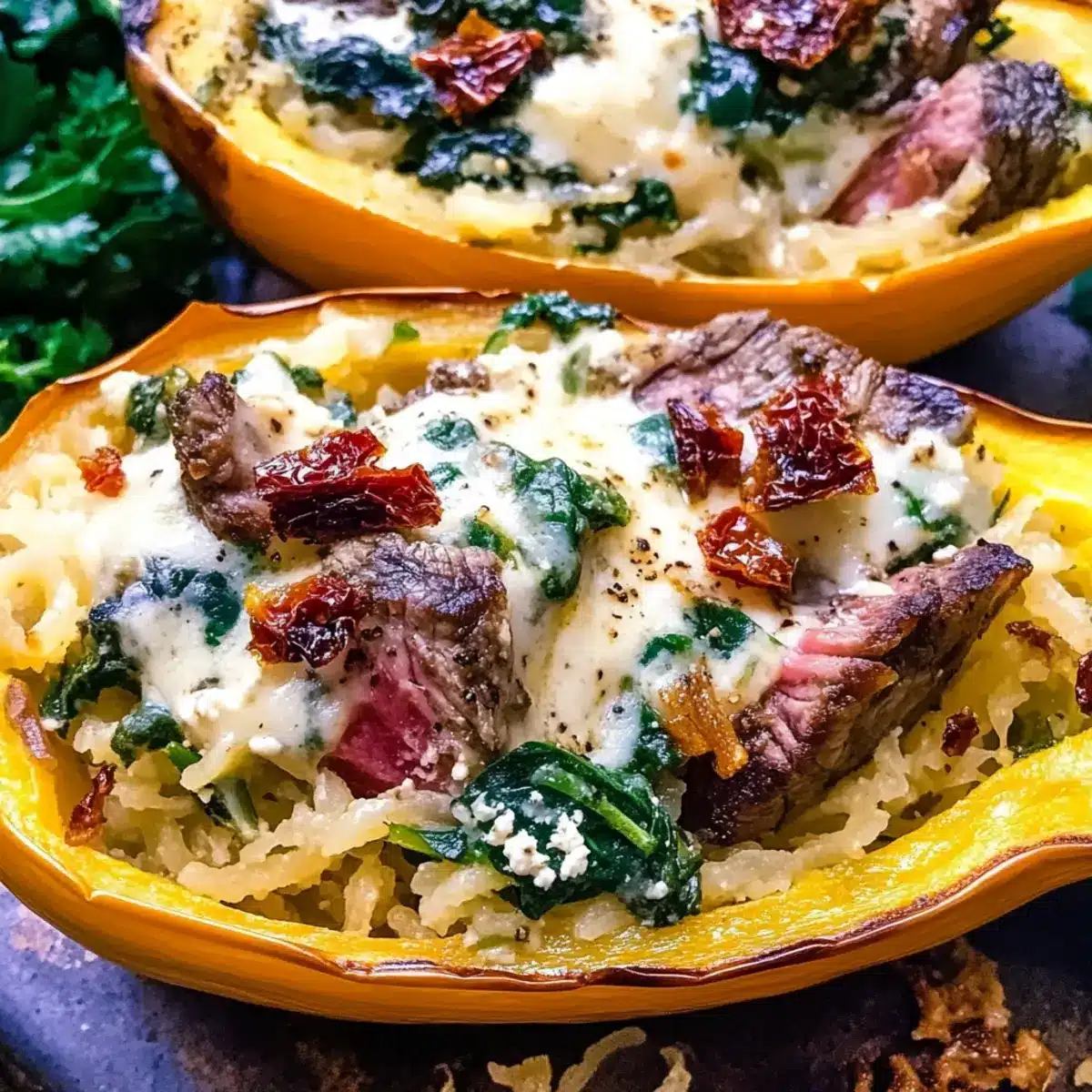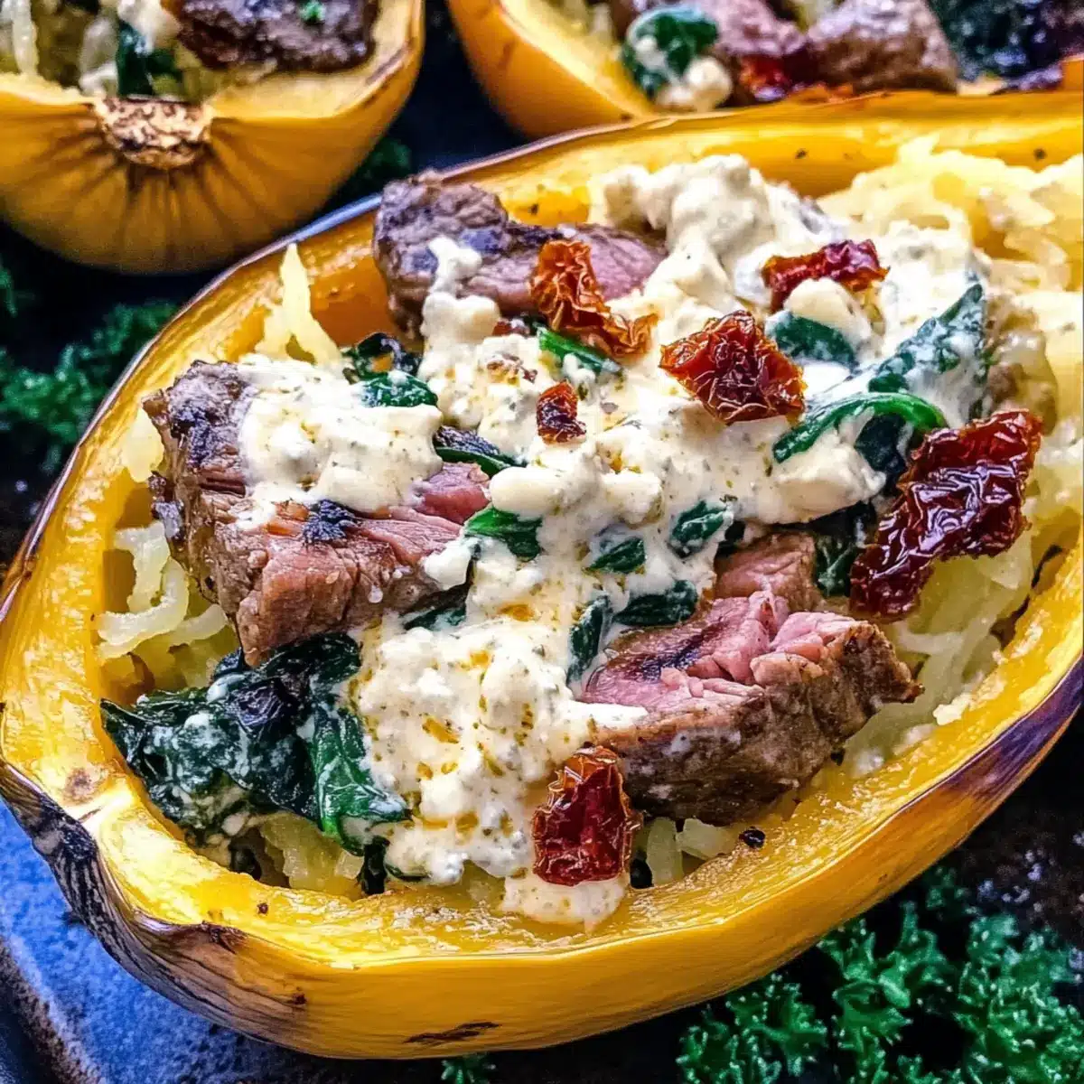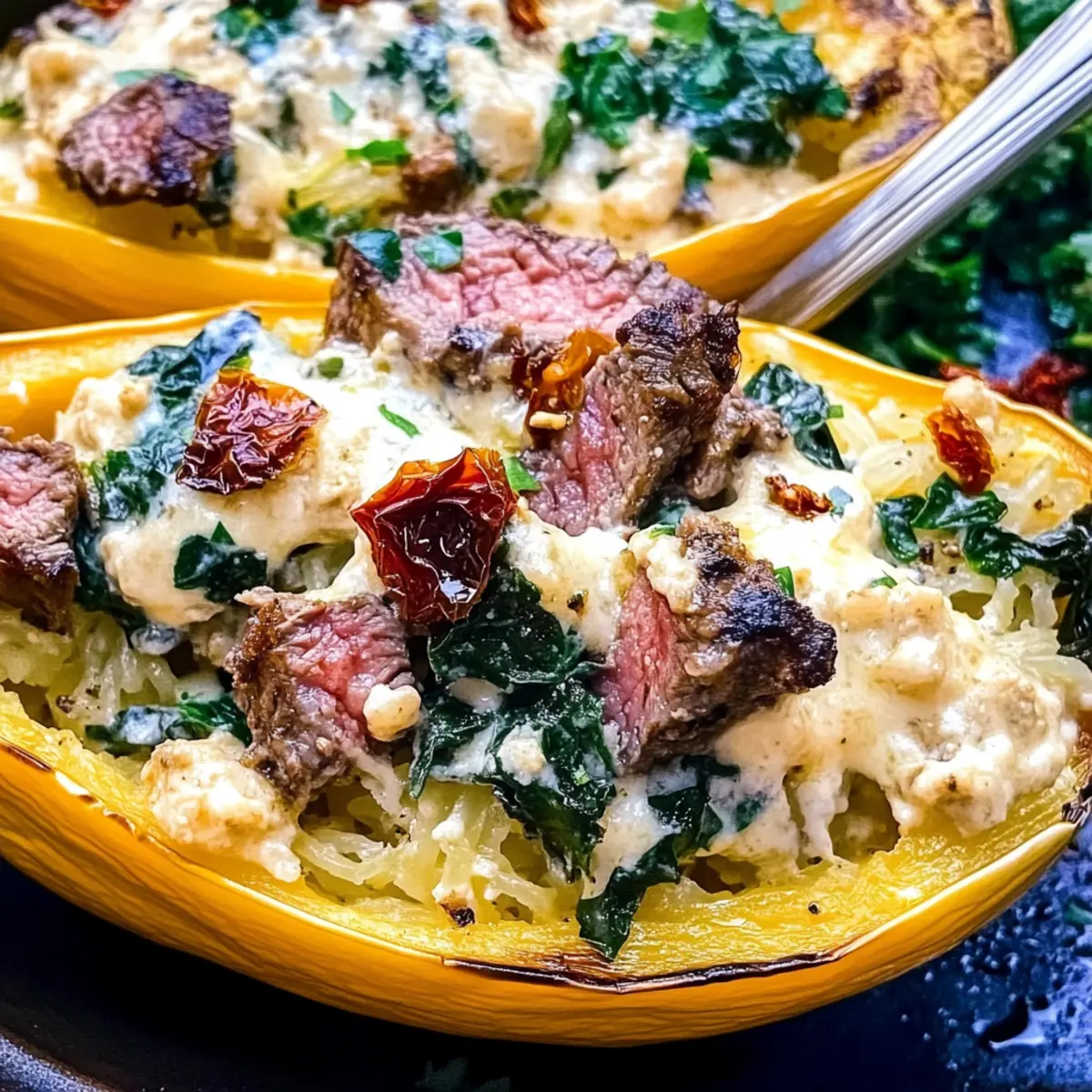 Steak Gorgonzola Alfredo Spaghetti Squash: A Creamy Delight