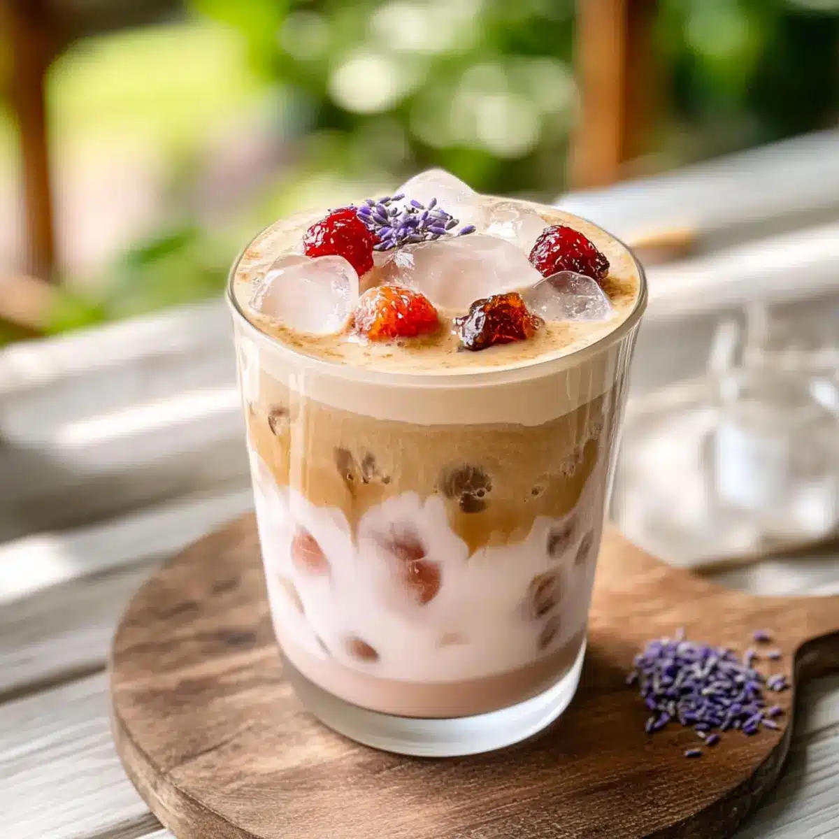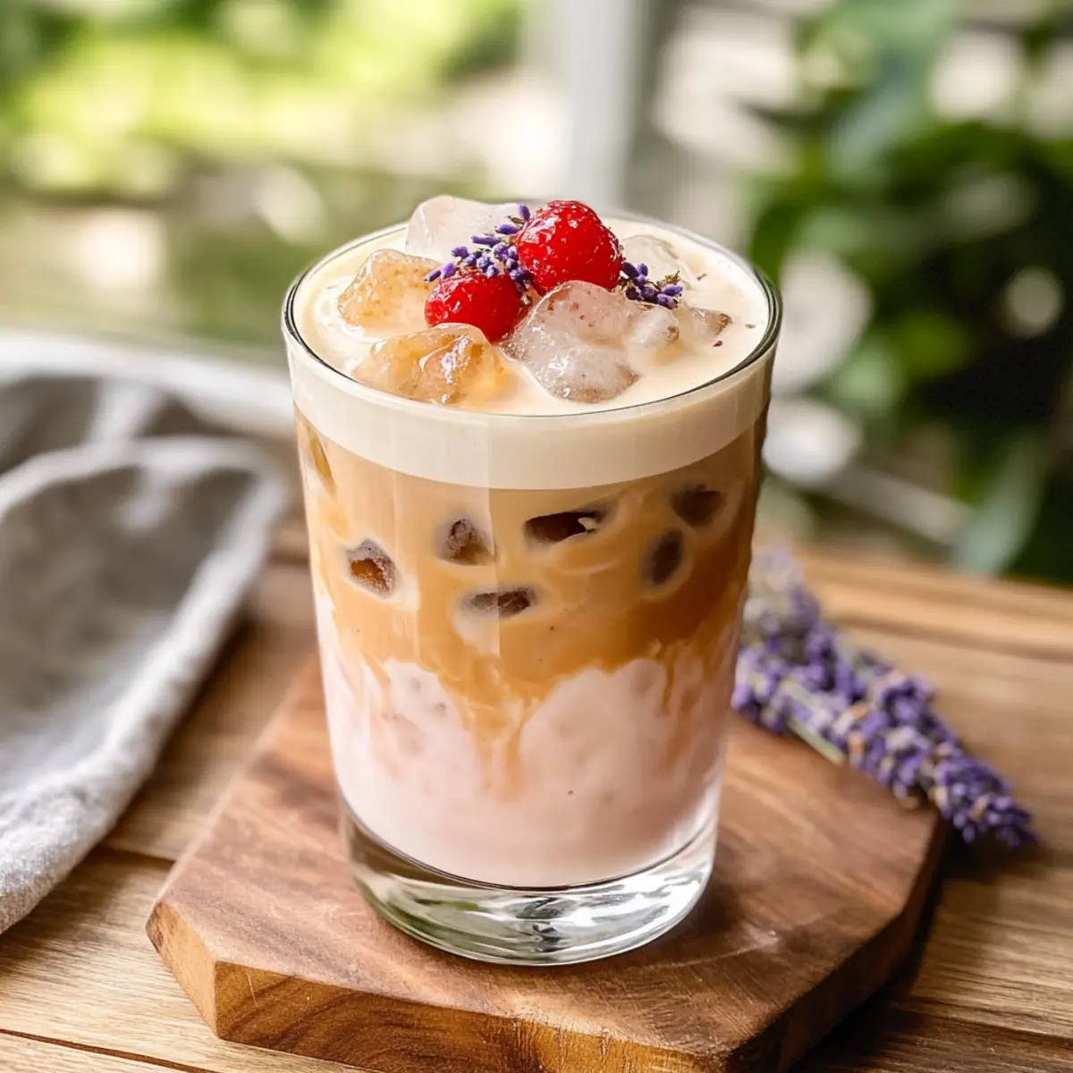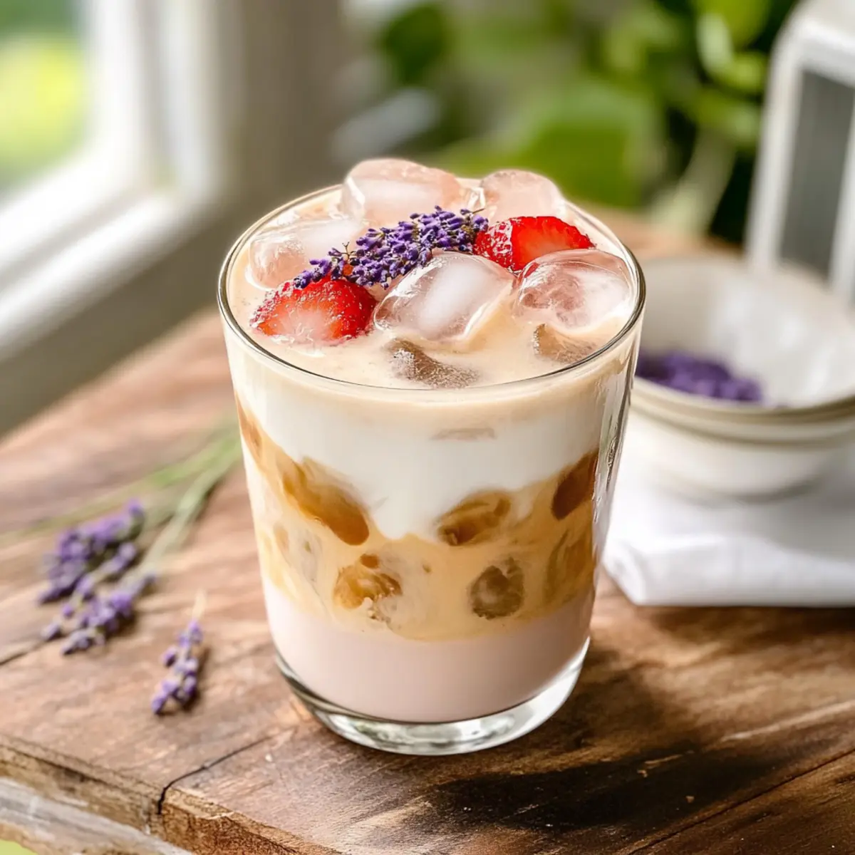 Garnish your Strawberry Cold Foam Iced Latte with additional fresh strawberries or a sprinkle of dried culinary lavender for an elegant finish. Serve immediately with a straw or a spoon, and enjoy the vibrant flavors of spring captured in this delightful drink!