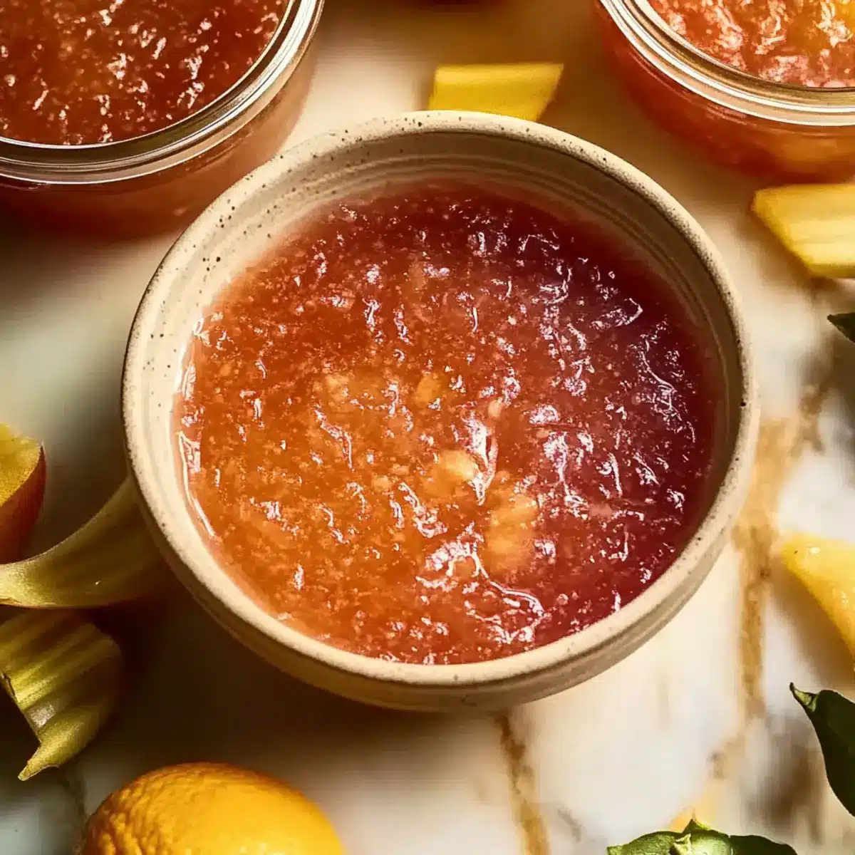 The vibrant aroma of sweet rhubarb jam wafts through my kitchen as I prepare this delightful treat, and I can’t help but smile. This Sweet Rhubarb Jam with Honey isn’t just another jam recipe; it’s a joyous celebration of tangy flavors and wholesome sweetness without the refined sugar. You won’t believe how simple it is to create a homemade jam that complements everything from toast to yogurt—an easy and delightful way to elevate any breakfast or snack. Trust me, your friends and family will be impressed! Plus, it’s gluten-free and naturally sweetened—two benefits that make it a perfect health-conscious alternative. Curious to see how this vibrant, luscious jam comes together? Let’s dive into the recipe!