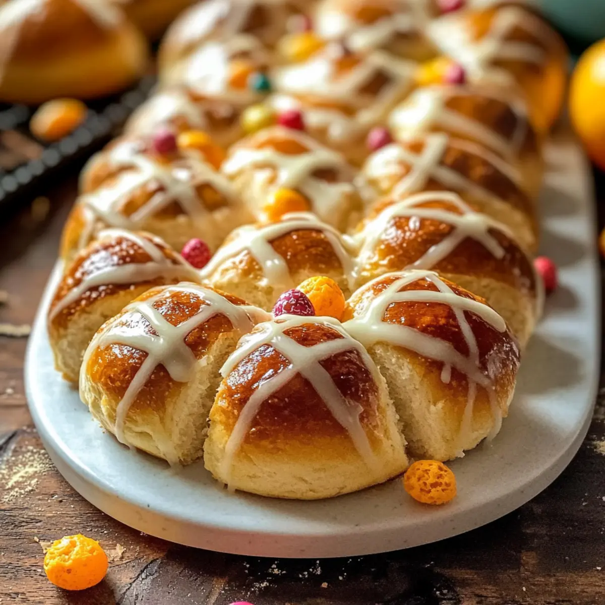Once baked, remove the bread from the oven and transfer it to a wire rack to cool. Meanwhile, prepare a glaze by whisking together 2 cups of powdered sugar and enough milk to achieve a pourable consistency. Once the bread is cool, drizzle the glaze over the top and add colorful sprinkles, making your Traditional Italian Sweet Glazed Easter Bread festive and delightful.
