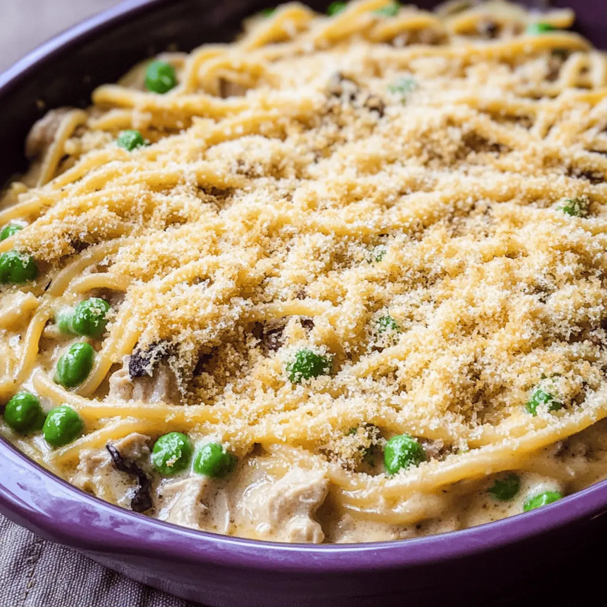 Preheat your oven to 350°F (175°C). Transfer the creamy tuna mixture into a greased baking dish, spreading it evenly. Sprinkle a generous layer of breadcrumbs over the top for that satisfying crunch. Bake in the oven for 15-20 minutes or until the topping is golden brown and crispy.