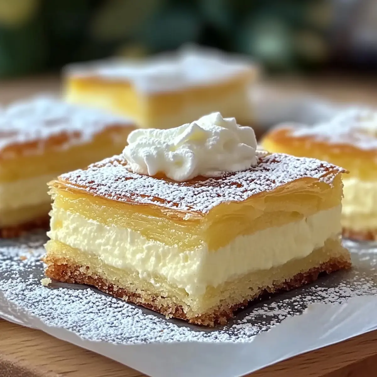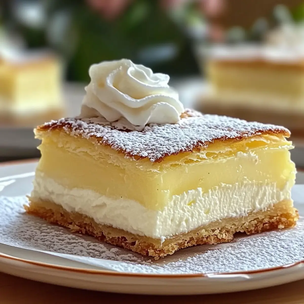 Elevate your dessert presentation and enjoyment with these Vanilla Custard Cream Squares that showcase a delightful balance of flavors and textures!