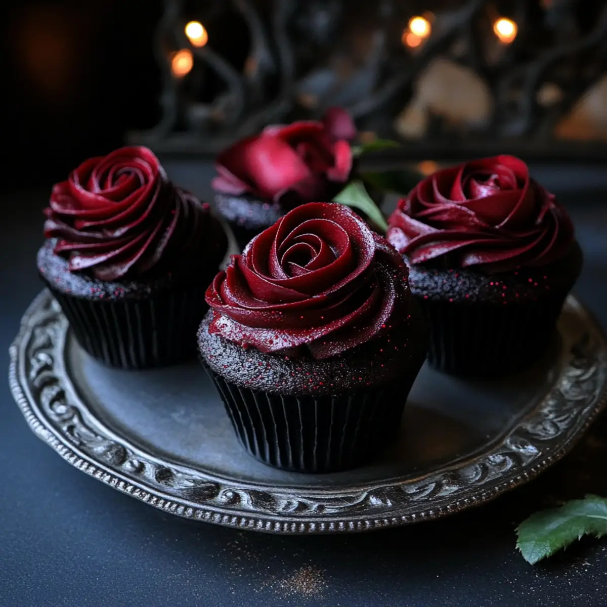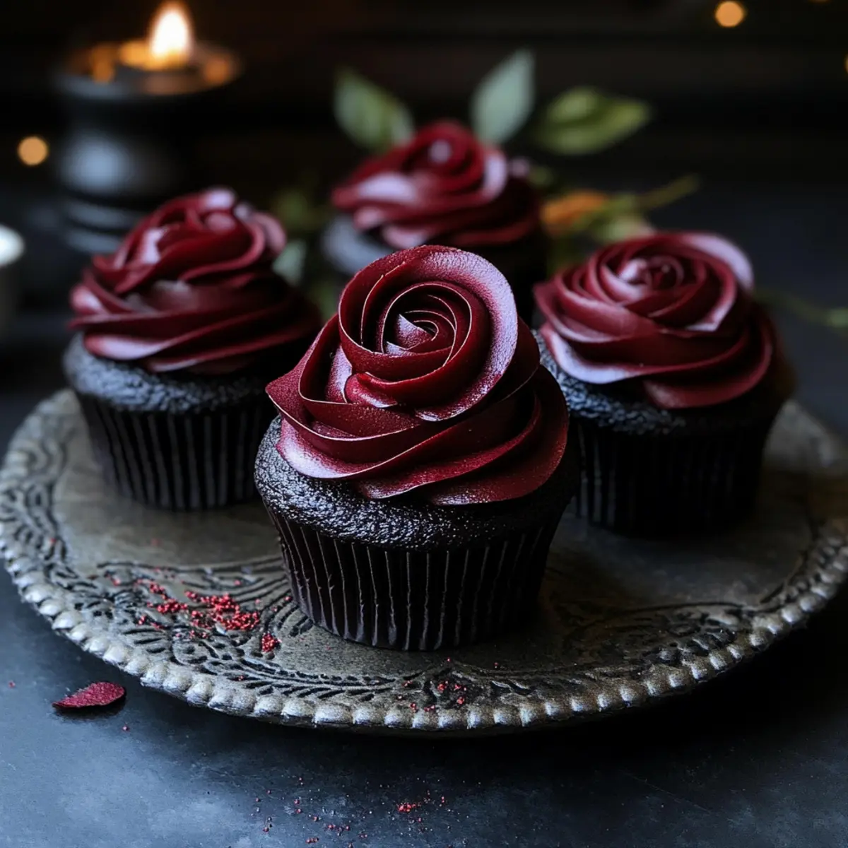 Gothic Wednesday Morticia’s Midnight Rose Garden Cupcakes Delight