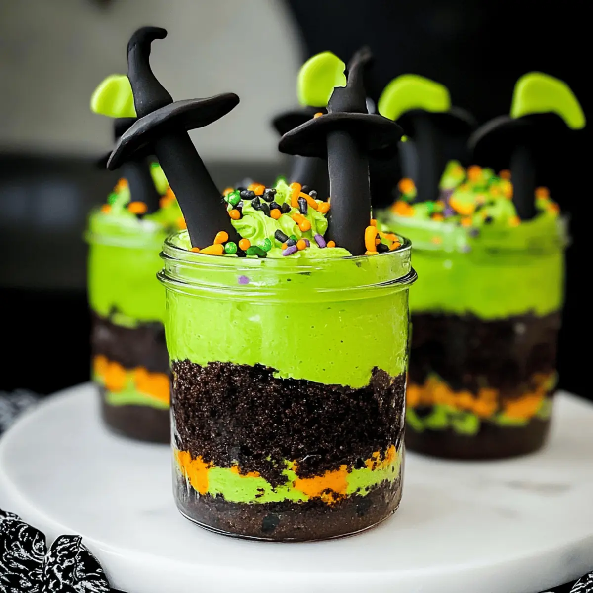 Festive Fun: These Witches’ Brew Halloween Cake Jars are not just desserts; they are a delightful centerpiece for your Halloween celebration!
